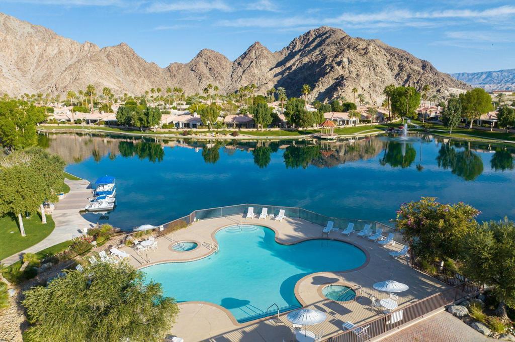 Welcome to Laguna De La Paz, a prestigious guard-gated community in the heart of La Quinta, where luxury and tranquility blend seamlessly. This beautifully renovated three-bedroom, two-and-a-half-bathroom residence offers an inviting and sophisticated retreat, featuring an open and airy layout designed for both comfort and entertaining.Every detail has been thoughtfully curated, from the elegant large-format porcelain tile flooring throughout to the separate den/office conveniently located off the kitchen. The light-filled living spaces include a cozy fireplace for cool desert evenings and an abundance of storage. The well-designed floor plan ensures privacy, with the primary suite tucked away from the guest bedrooms. Custom closet organizers enhance each bedroom, while fully renovated, spa-inspired bathrooms exude modern elegance. A thoughtfully added quarter bath and a relocated stackable laundry enhance convenience without sacrificing space.Seamlessly blending indoor and outdoor living, this home features multiple areas for entertaining and relaxation. A custom-built BBQ and expansive patio set the stage for al fresco dining, while a firepit offers the perfect setting to gather with family and friends and take in the breathtaking desert sunsets.Laguna De La Paz offers an unparalleled lifestyle with resort-style amenities, including 15 pools, 16 spas, five tennis courts, a five-acre lake with an electric boat and paddle boats, a state-of-the-art fitness center, and a clubhouse designed for social gatherings and events. Perfectly positioned just minutes from world-class golf, tennis, pickleball, hiking, dining, and entertainment–including the renowned La Quinta Resort, La Quinta Country Club, and the new Acrisure Arena–this is a rare opportunity to embrace the very best of desert luxury living.