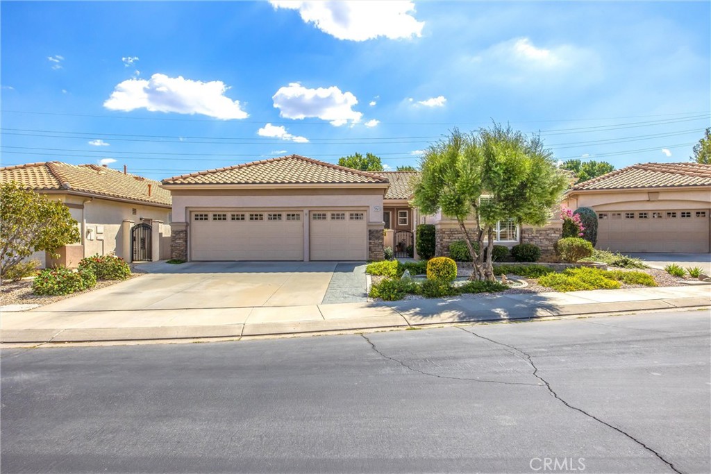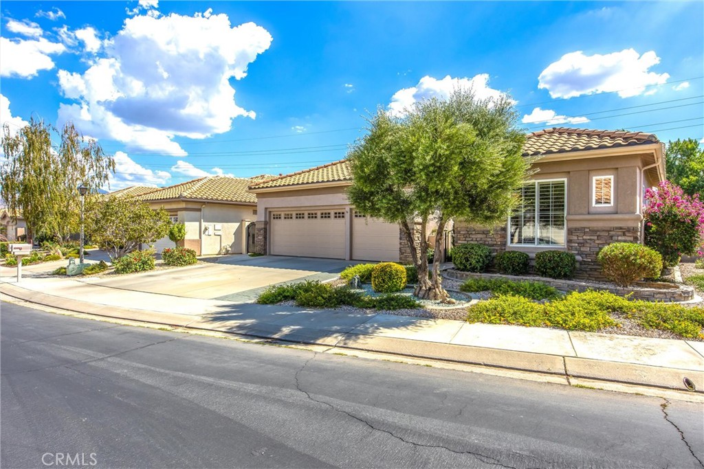 Only plan in Sun Lakes with 3 car garage – this one is lovely and on the Greenbelt with a view of the fifth fairway, Mt. San Jacinto. Wisteria plan kept immaculate with 2 bedrooms, 2.5 baths and den. Home also has formal living room and family room with an island in the kitchen and inside laundry room – YOU MUST SEE THIS HOME TO APPRECIATE ALL THE UPGRADES. HVAC has been updated a 2021 and carry warranties thru 2031 and 2041. Stamped concrete edge driveway and front entry – Phantom Screen doors – Leaded Glass Windows at entry and powder room – upgraded white cabinetry throughout home – custom wall with cutouts between entry and dining room – solid wood Avalon Shutters in living room and carpet upgraded recently – Sold slab granite countertops – custom window moldings – decorator hanging lights over island – trash recycling cupboard – extra insulation in wall between kitchen and laundry – Solid wood 4″ Avalon Shutters in both bedrooms – Custom vanity with added storage drawers in master bath – Garage cabinets and added storage – lighted attic storage above garage via access ladder – beautifully hardscaped front and back – and a lovely patio to enjoy your evening drink of choice. After all that, all the benefits of Sun Lakes Country Club making your retirement days go fast.