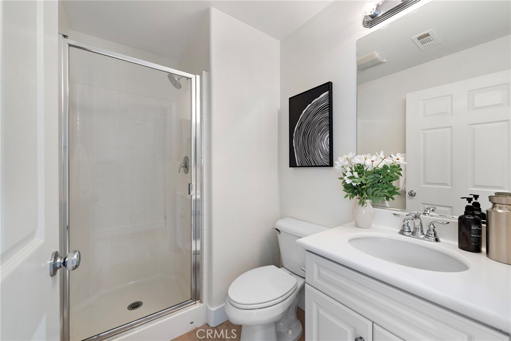 This bright, move-in ready corner condo in desirable Portola Springs features 3 bedrooms and 3 bathrooms with thoughtful upgrades throughout. The entry level includes a private bedroom and full bath, ideal for guests, in-laws, or a home office, along with a separate laundry room for added convenience. The second floor main living area features an open-concept design filled with natural light. Enjoy a cozy fireplace in the living room, a generous dining area, and a modern kitchen complete with a large center island, perfect for meal prep and entertaining. A second bedroom and full bath are also on this level, offering comfort and flexibility. Upstairs, find a luxurious primary suite with dual walk-in closets and a spacious bathroom with a shower, tub, and dual vanities. Enjoy resort-style amenities including community pools and spa, tennis and basketball courts, parks, and walking/biking trails. Zoned for award-winning Irvine Unified School District and a short walk to Portola Springs Elementary, the home is also minutes from Woodbury Town Center, Irvine Spectrum, Great Park Sports Complex, and the upcoming Canopy Shopping Plaza.
