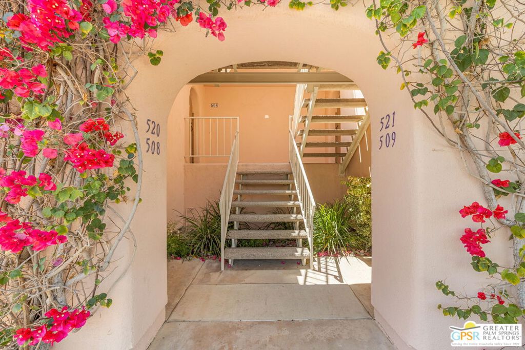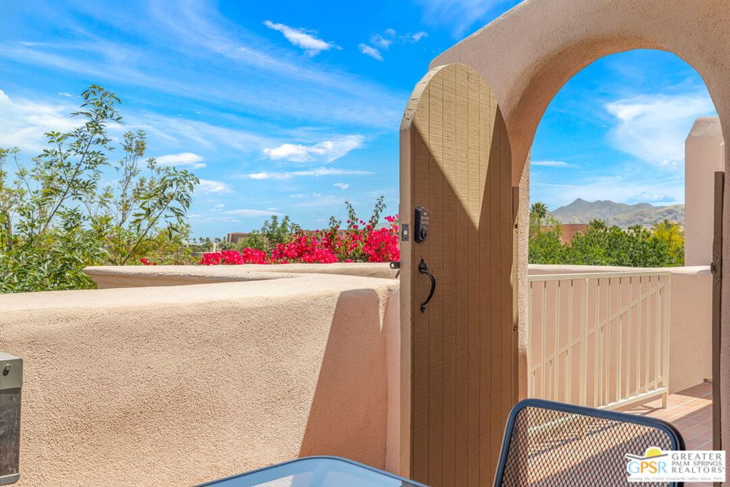 Looking for the perfect desert escape and an investment opportunity? Welcome to Palm Springs Deauville, just blocks from the buzz of Palm Canyon Drive. Designed by celebrated desert architect Hugh Kaptur, this upper-level condo delivers on all fronts with vaulted ceilings + clerestory windows, an open-concept layout, and lots of natural light. Both the main living area and the ensuite bedroom open to the private patio with its pleasant views and quiet placement in terms of road noise. This 1-bedroom, 2-bath home is sold fully furnished and move-in ready, ideal for part-time residents or vacation rental investors. Recent upgrades include fresh interior paint, a new AC/heat pump, newer kitchen appliances, carpet, and luxury vinyl flooring. The gated and secure property adds peace of mind, and owners enjoy a large underground storage unit in addition to the condo’s dedicated owner’s storage closet. Enjoy resort-style amenities including three sparkling pools and spas, tennis courts, pickleball, a fitness center, clubhouse, and underground parking (3 cars allowed) with extra storage and bike space. In-unit washer and dryer included. Palm Springs Deauville allows 14-day minimum rentals. Take the Matterport 3D Virtual Tour to explore the layout and vibe. Even more exciting, the future high-end “Dream Hotel and Condos” is in development just across the street, adding long-term value and appeal. Whether you’re looking to invest, escape, or both, this Palm Springs home is a delight on all fronts. Enjoy it all.