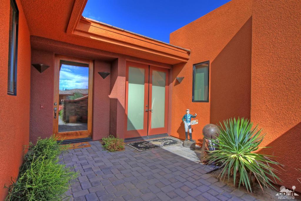 Palmilla, not just a home a lifestyle! This master planned community features boldly designed showcase homes set among shimmering lakes, original metal sculptures and lush desert landscaping that has won several builder awards! The WEST facing highly sought after Palo Brea model features a terrific open floor plan with ceiling to floor pocket sliders, living rm stack stone wall to wall fireplace, 24×24 tiled flooring, vaulted ceilings, step down wet bar, granite, designer appointed furnishings, gourmet chef’s kitchen, custom paint & electronics throughout the home make it move in ready. Family and friends can enjoy the private backyard with custom pebble tech pool with raised stack stone spa, oversized flag stone BBQ, and upgraded pavers throughout the backyard.