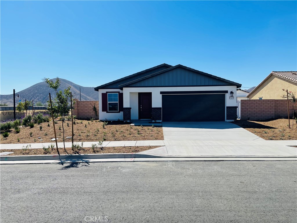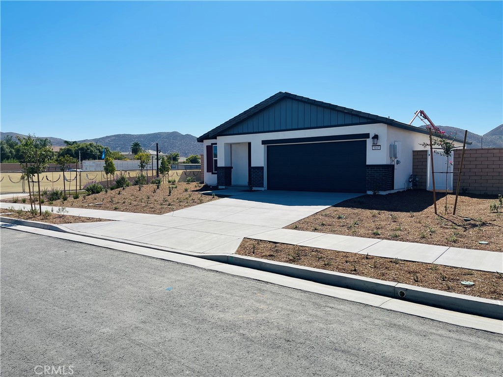 1ST MONTH FREE RENT BRAND NEW HOME! INCLUDES SOLAR! Be the first to live in this brand new Lennar home in the Stable View at Saddle Point community of West Hemet. This Stable View, Residence 2, is a single story, corner lot, home with 3 bedrooms, 2 baths and a 2 car garage. Walk in the front door and the first left down the hall are bedrooms 1 and 2 and the guest bath (see floor plan map). Continue down the hall and to the right is the great room with kitchen, dining and living rooms. At the back left of the home is the primary suite with walk-in closet and bathroom. The home also features vinyl flooring throughout with carpet in the bedrooms and living room area, beautiful kitchen with white cabinets, stainless steel appliances (including new fridge), granite counter tops, quartz counter tops in the bathrooms, high ceilings, laundry room with new washer and dryer, solar with battery that is charged by the solar good for outages and EV charging features in the garage, and the back yard will have a patio and landscaping (owners are in process of figuring out the backyard landscaping). The community has a gated pool, clubhouse, BBQ area, Tot-Lot and playground, close to Diamond Valley Lake Recreation area, is walking distance to West Valley High School and is close to shopping, restaurants and commuting via Domenigoni Pkwy and Highway 74. This home is a MUST SEE!