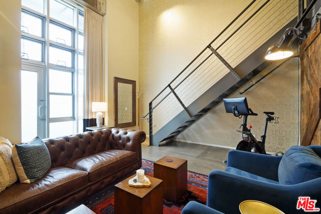 Nadia Geller Designs has created the interior of this breathtaking 2-story Barker Block live/work loft being offered fully furnished. All contents, including furniture, fixtures, kitchenware, carpets and motorized window treatments, plus a custom-built wardrobe, showcase the classic Nadia Geller signature style known as “casual luxury.” The loft is structured with the residence on the ground floor. It features 20′ ceilings in the living room, a dining area, gourmet kitchen with island, bar area, bedroom and full bath; on the second floor, you’ll find a work space comprising three offices, a conference area, a lounge area, storage space and full bath. There is direct access from the second floor hallway. This live/work home is perfect for the next business owner looking for a turnkey space. Or, if your Buyer doesn’t require an established work space, simply remove the partitions and create that second bedroom, media space or whatever is needed. The West-facing entrance features floor-to-ceiling, dual pane windows; there are sections of polished concrete and hardwood floors; an in-unit washer and dryer; and the loft has direct access from both Hewitt St. and two interior hallways. Your Buyer will enjoy close proximity to the two covered parking spaces, community mailroom, building security and elevator to the resort-style rooftop deck which offers a heated pool & spa, cabanas, BBQs, fire pits, dining areas and a newly equipped fitness center. There is also an inviting courtyard lounge with firepit and seating areas on the ground floor. For residents using amenities who wish to go online there is free common area WiFi. There is 24/7 building security with added safety cameras throughout the building. Located just steps from Urth Caffe & the LA Cleantech Incubator. Central to all Fwys. Near USC; walk to SCI Arc and the new 1st St. Metro station. Revisit the ever-red-hot Arts District, home to Spotify, Warner Bros. Music, SOHO House, award winning 5 star restaurants like Girl and the Goat & Bavel, clubs, taverns & all things hip and trending. You really must see this unique property in person to appreciate all it has to offer.