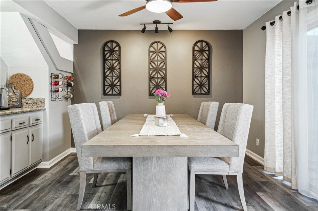 Updated Montclair Town Center Condo – Move-in Ready! Featuring 3 bedrooms and 3 bathrooms with 1,426 sq ft of living space, a large private patio, and a 2-car garage. The interior of this upgraded home includes vinyl plank flooring, textured ceilings, baseboards, and a newer HVAC system. The living room boasts a stacked stone fireplace and opens to the kitchen, which features a bar seating area, granite countertops, tile backsplash, white cabinetry, and appliances including a 4-burner cooktop, built-in oven, microwave, and dishwasher. A formal dining area and a half bathroom complete the main floor. Take the staircase with a wrought iron banister to the second floor, where you’ll find all 3 bedrooms, including the spacious primary bedroom with mirrored closets, a private bathroom, and a balcony with great views! A full-size hall bathroom serves the two secondary bedrooms. The fully fenced backyard patio is ready for the new owner’s design and also provides access to the 2-car garage. Residents can also enjoy the community pool, spa, and playground. Low HOA fee and centrally located near schools, shopping, and more!