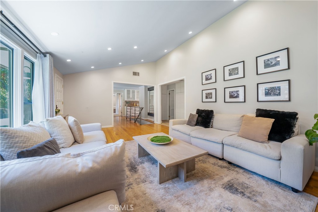 Charming gated two-story, 4-bedroom, 3-bath home offers nearly 2,800 sq ft of living space on a 9,618 sq ft lot South of the Boulevard. A private entry leads to ample driveway parking, a covered two-car carport, a welcoming veranda, and landscaped turf grounds. Inside, soaring ceilings, custom millwork, and walls of glass fill the home with natural light. The updated chef’s kitchen with stainless appliances flows to multiple indoor-outdoor entertaining areas, including an expansive terrace with tree lined views. The main level features vaulted ceilings, airy living and dining rooms, a bonus family room with exposed wood beams and fireplace, a bedroom with custom built-ins, a vintage clawfoot bath, and a serene primary suite with spa bath, walk-in closet, and French doors to a private balcony. The remodeled lower level adds two bedrooms, a full bath, a flexible space with built-ins, plus a laundry room and another separate bonus room ideal for an office, gym, or studio. The gated backyard offers generous entertaining space, secure play areas, and citrus trees for fresh fruit. 5150 Elvira combines rare privacy with easy access to Ventura Boulevard, top schools, shopping, dining, the freeway, and the beach.
