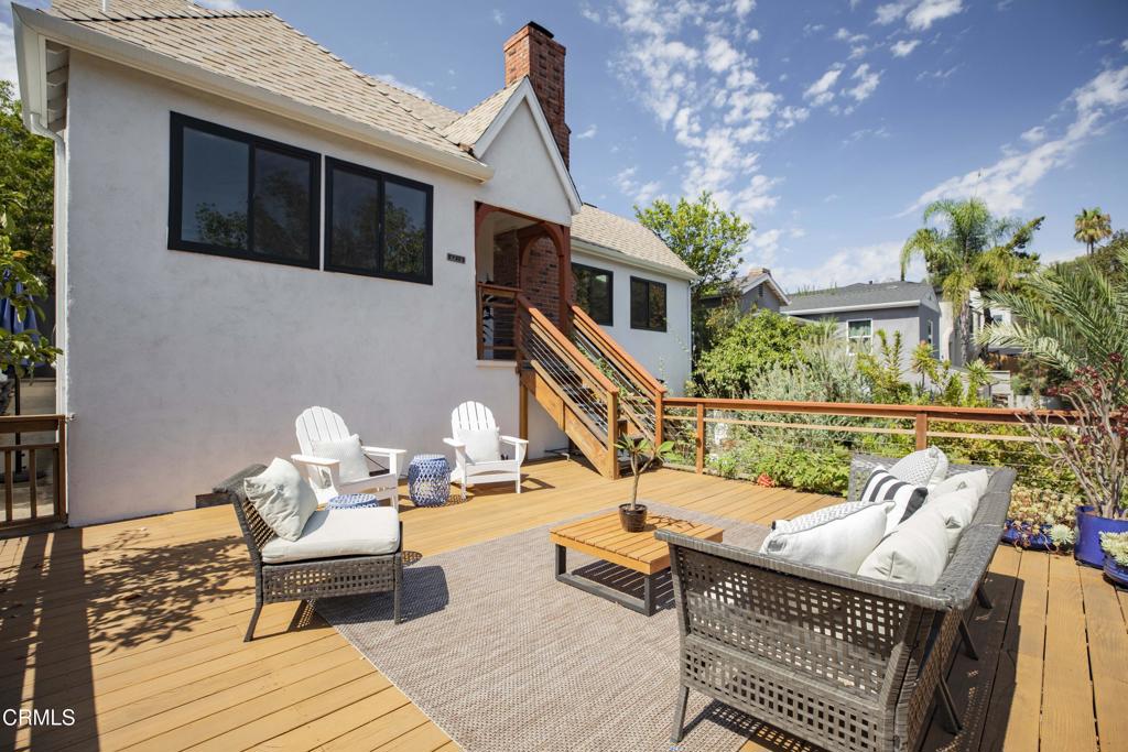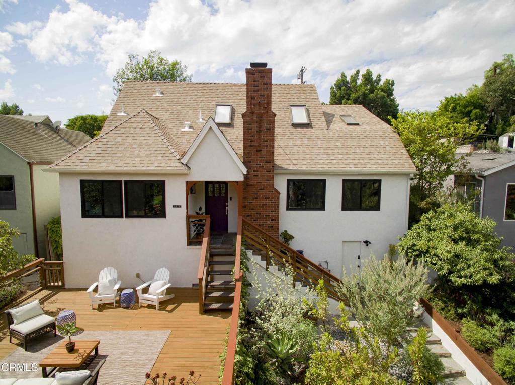 Set atop a gentle knoll with sweeping treetop views, this three-bedroom, two-bath English cottage blends classic architectural character with thoughtfully integrated modern amenities. The light-filled open floor plan centers on a welcoming great room with hardwood floors, a cozy fireplace, and French doors that open to an expansive patio and gardens–offering dappled sunshine, shaded retreats, and seasonal color from mature trees, shrubs, and vines. The chef’s kitchen showcases stainless-steel appliances, soapstone countertops, a breakfast bar, and abundant custom cabinetry.A striking floating staircase ascends to the primary suite, where a vaulted ceiling, multiple skylights, a generous walk-in closet, and a sleek stone bath with an oversized shower create a private sanctuary. Two additional bedrooms and a full bath with a spa tub complete the main floor bedroom wing.Crowning the home is a rooftop deck–an ideal vantage point for park views and cool evening breezes. Perfectly positioned north of Colorado Boulevard, this timeless residence offers easy access to neighborhood shops, restaurants, a local dog park, and public transportation, achieving a seamless balance of serenity and convenience.