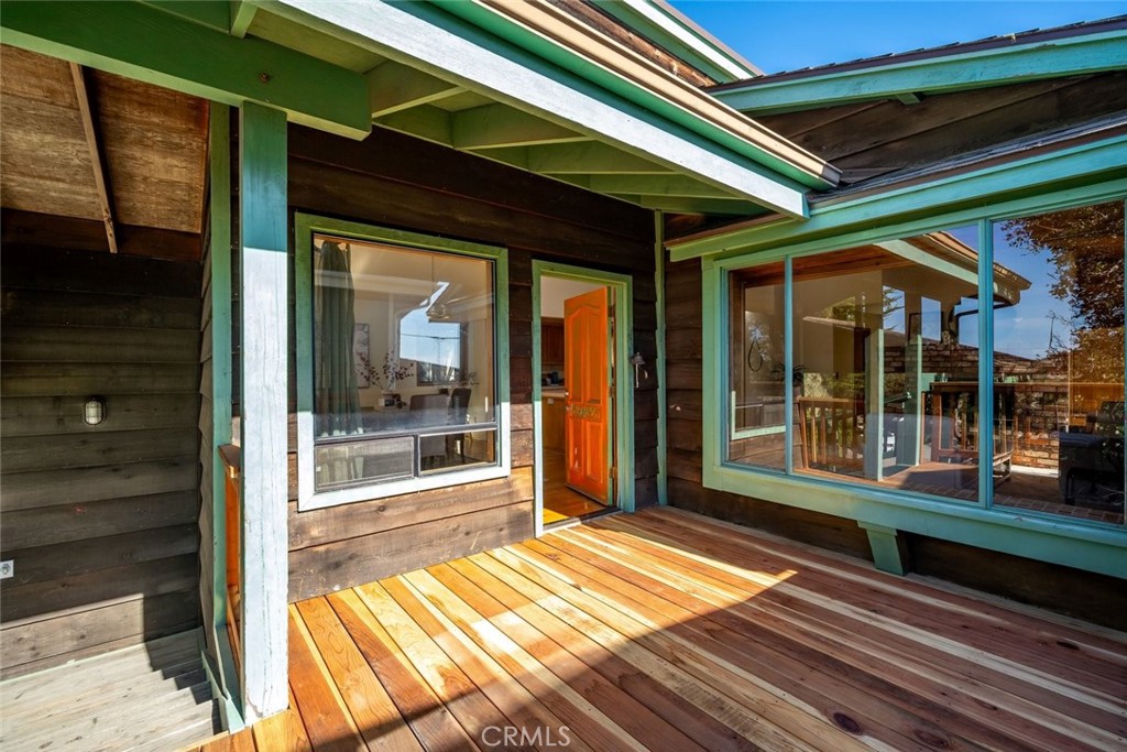 Indulge in crisp sea breezes from every corner of this extraordinary haven awaiting your loving care! Positioned on a secluded cul-de-sac, the original redwood cabin was expanded by its current owner in 1990 and offers considerable privacy. Inside, vaulted cedar ceilings and walls set the tone, while a brick wood-burning fireplace anchors the living room with timeless character. Natural light pours through skylights, illuminating the dining area, while the adjoining kitchen is both practical and stylish, with stainless steel appliances, a prep island, tiled countertops, and a generous pantry. The main floor offers an office/library with built-in shelves and a loft, plus two comfortable bedrooms for flexible sleeping arrangements – all of which offer views of the shimmering sea. A second primary suite, with soaring ceilings, dual walk-in closets, a balcony with whitewater vistas, and a tranquil ensuite, is exclusive to the upper level. Perks include a laundry nook, ample parking, and abundant storage throughout. Unwind in your low-maintenance yard with citrus trees, host celebrations on the expansive deck with its ocean views, and enjoy easy access to Moonstone Beach and Cambria’s West Village. Come see how this coastal retreat could be your ideal escape from the city!