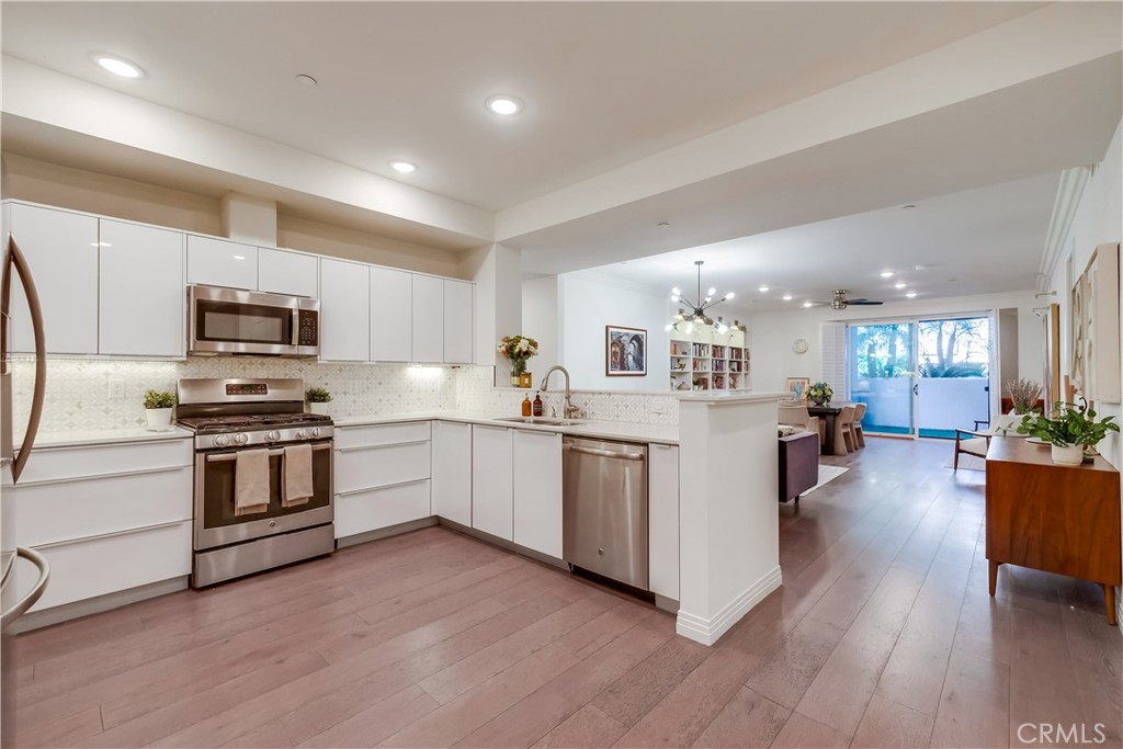 Step into luxury with this Designer perfect 3-Bedroom Condo PLUS 4th room/Home Office. Discover luxury living in this stunning condo, perfectly located just adjacent to Studio City. This first-floor residence, with no steps, embodies elegance and style, and a spacious open floor plan ideal for modern living. The sleek, contemporary kitchen is a showstopper, featuring premium finishes and ample space for both cooking and entertaining. Custom-built bookcases add a touch of sophistication to the living area, perfect for showcasing your favorite books or decor. Gorgeous large plank wood floors throughout. The primary suite is your personal retreat, complete with a large walk-in closet and an expansive en-suite bathroom. Two additional bedrooms, along with a beautiful bathroom, are situated off a private hallway, ensuring comfort and privacy. Enjoy the luxury of not one but two lush, private patios—perfect for relaxation and entertaining. The versatile bonus room offers endless possibilities, whether you need a home office, guest room, home gym, or a creative space tailored to your needs. Situated in a prime location, this condo offers the best of both worlds—peaceful living in a highly desirable area, with the vibrant energy of Studio City just moments away.