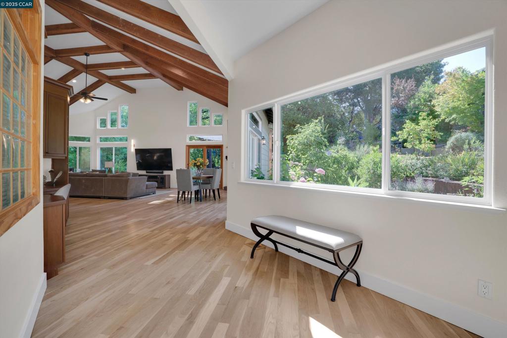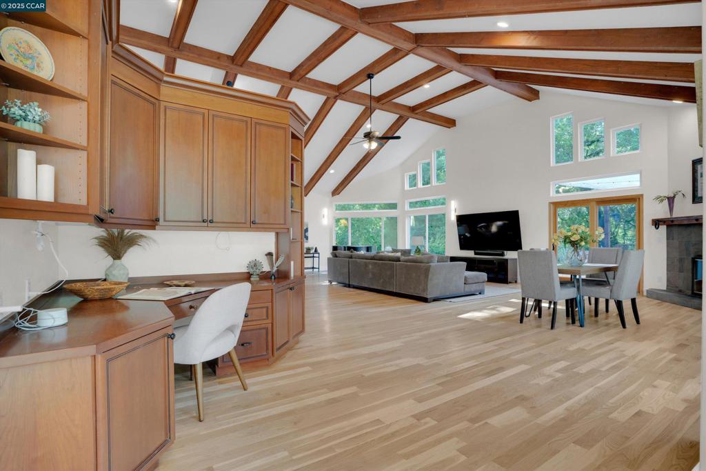 As you cross a storybook bridge over a gentle creek, you’ll discover a rare gem in the prestigious Alhambra Valley of Martinez—a private 1.79-acre retreat that beautifully marries luxury with nature. The impressive 4,997 sq ft main residence boasts two expansive primary suites (including one on the main level with a private deck, hot tub, and outdoor shower), two additional bedrooms, and four full bathrooms. At its heart is a dramatic great room with soaring ceilings, a chef’s kitchen, and walls of glass that showcase garden and woodland views from nearly every room. A versatile junior ADU/media room with its own kitchen and bath is perfect for guests or multigenerational living. Beyond the main home, a 1,110 sq ft detached structure features a 16’x37’ garage, a 14’x37’ retreat room, and an upstairs office loft with a private deck. Adding to the charm is a 520 sq ft A-frame cottage with a loft that overlooks the sparkling pool. The grounds are equally enchanting, with a bocce court, expansive decks, an English garden, fruit orchard, and the tranquil creek. Eco-conscious amenities include fully owned solar with backup batteries, a three-phase water filtration system, and abundant parking. This is more than a home—it’s a magical estate designed for inspired living.