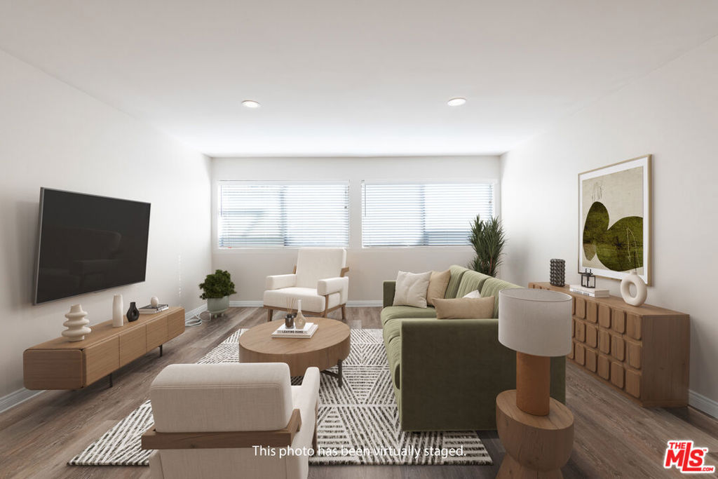 Spacious and bright third-story condo with modern upgrades in a desirable Hancock Park/Larchmont location. This large, light-filled unit offers elevator access and an open-plan kitchen with an oversized island, granite countertops, and abundant storage; perfect for cooking and entertaining. The kitchen is equipped with a refrigerator, freezer, range, and dishwasher. Beautiful wood laminate flooring flows throughout the home. The upgraded main bathroom features granite countertops, dual sinks, and a walk-in shower. The expansive primary bedroom comfortably fits a king-size bed and includes two generous walk-in closets. For convenience, the unit offers a stacked LG washer and dryer, plus access to a community laundry room for larger items. Additional highlights include tandem 2-car parking, extra storage in the garage, central air and heat, secure entry, and a community pool and sauna. Ideally located near Melrose, Larchmont Village, and a wide selection of restaurants, shops, entertainment, and activities, this home combines comfort, style, and accessibility in one of L.A.’s most sought-after neighborhoods.