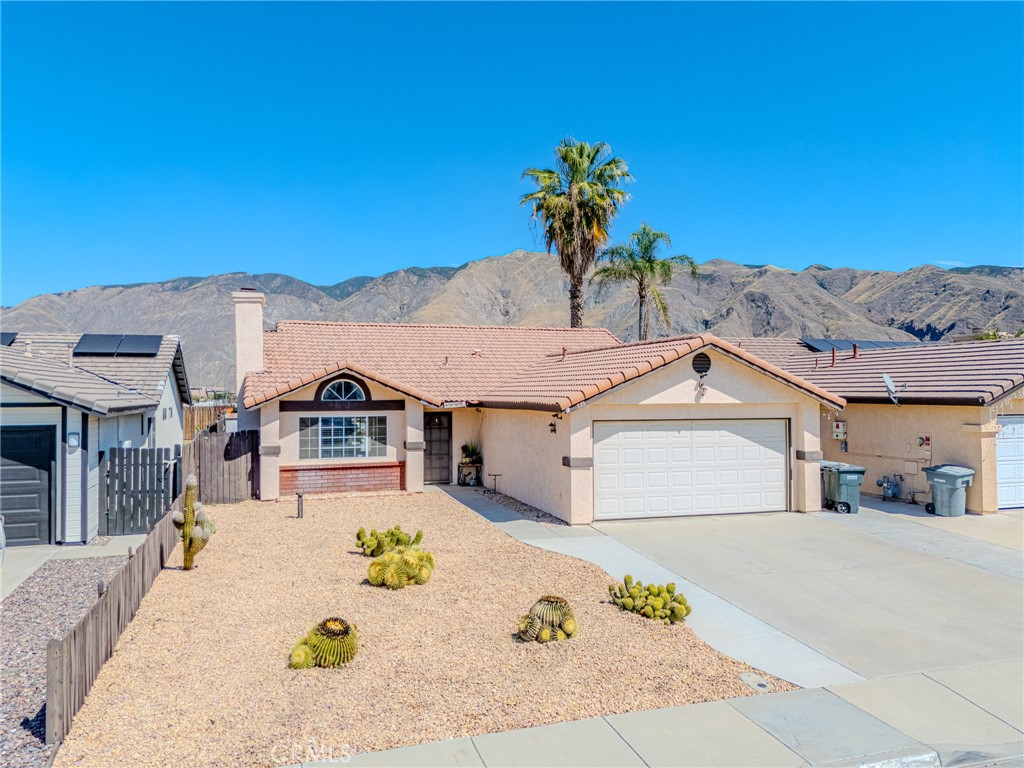 Look at the Scenic Mountain View for this Beautiful maintained Single-family residence featuring 3 bed & 2 full bath with 1410 ft.². An open floor plan with an updated modern kitchen with a bar /coffee station. A large living room and dining area. Master bathroom has been updated with the tile walls in the shower. Backyard is perfect for the kids to play or family gatherings with a laminated patio and a grill with tile countertops. Backyard with artificial grass and cemented slab. Front yard and backyard have updated with drought resistant landscaping for low maintenance. Conveniently located in a Cul-da-sac near school, parks, shopping centers and minutes away from Soboba Casino Resort! This home has great curb appeal and is ready for you to see!