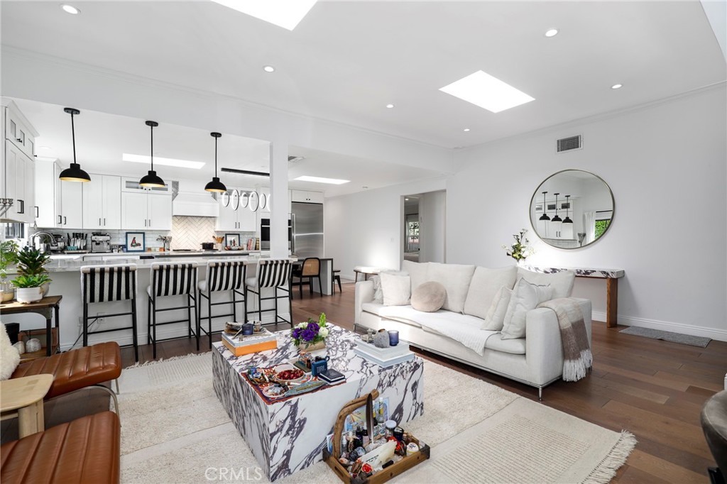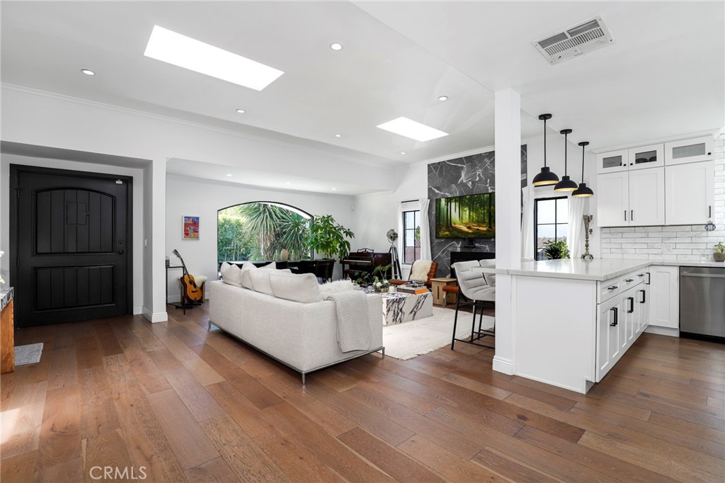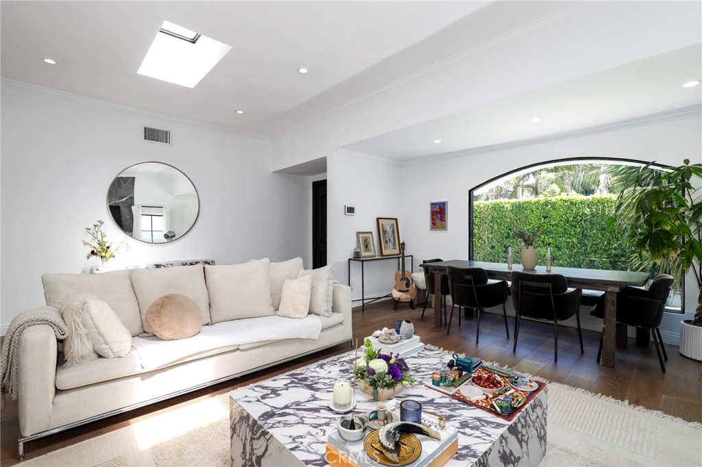 Completely renovated in 2019, this Spanish-style residence blends timeless architecture with a modern, open-concept design in one of Los Angeles’ most desirable neighborhoods. With 4 bedrooms and 3 bathrooms across approximately 2,100 square feet, the home sits on a generous 6,494 sq ft lot. The expansive living room features soaring ceilings, abundant skylights, and large windows that flood the space with natural light. Hardwood floors and a cozy fireplace create a warm yet sophisticated setting, while the open flow leads seamlessly into the dining and kitchen areas. The chef’s kitchen is fully updated with modern appliances, sleek finishes, and plenty of counter space. The spacious primary suite includes a walk-in closet and a spa-like bathroom, while the additional bedrooms and bathrooms offer comfort and flexibility for family, guests, or a home office. Upgraded with central heating and A/C, in-unit laundry, and a thoughtfully designed layout, this home is move-in ready. Outside, the large private yard provides the perfect space to relax, entertain, or garden, with the added convenience of driveway parking. Located just a short distance from Melrose Avenue, The Grove, and the Beverly/Fairfax district, 543 N Gardner offers the best of LA living — character, comfort, and an unbeatable location. Don’t wait — this beautifully updated home is a rare find and won’t stay on the market for long!