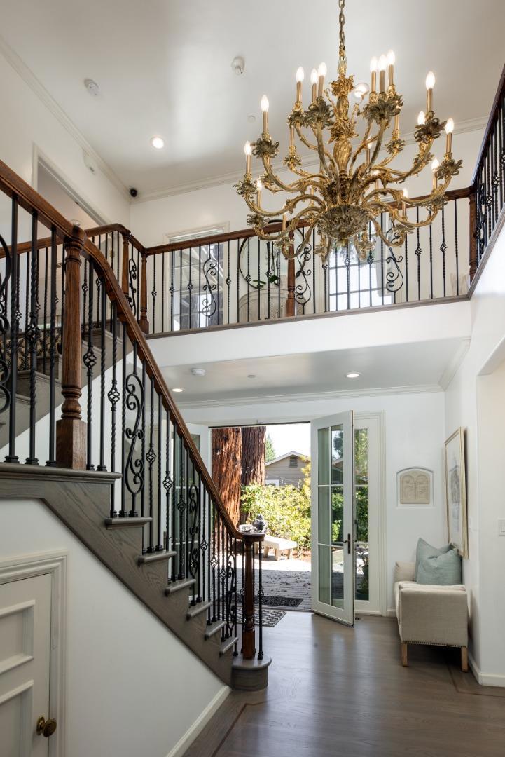 Impressive curb appeal and timeless design define this stately Silicon Valley home, set on a tranquil cul-de-sac. Less than 30 years young, the residence opens with a grand entry and sweeping staircase, leading into a light-filled great room with high ceilings, a cozy adjacent bonus nook, and an exquisitely renovated kitchen perfect for both family living and entertaining. With 5 bedrooms, including one designed as a full home office, the layout offers incredible flexibility. The palatial primary suite is a true retreat, complete with a spacious flex-space ideal for exercise, a library, or a second office. The rear gardens are equally impressive, with a redwood grove adorned with cafe lights creating a magical outdoor setting. Children will love the cul-de-sac setting, while neighbors enjoy regular community gatherings. A rare blend of elegance, comfort, and connection this home is a serene respite from the daily buzz of Silicon Valley. Make it your personal palace on Placitas.