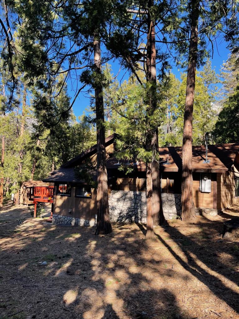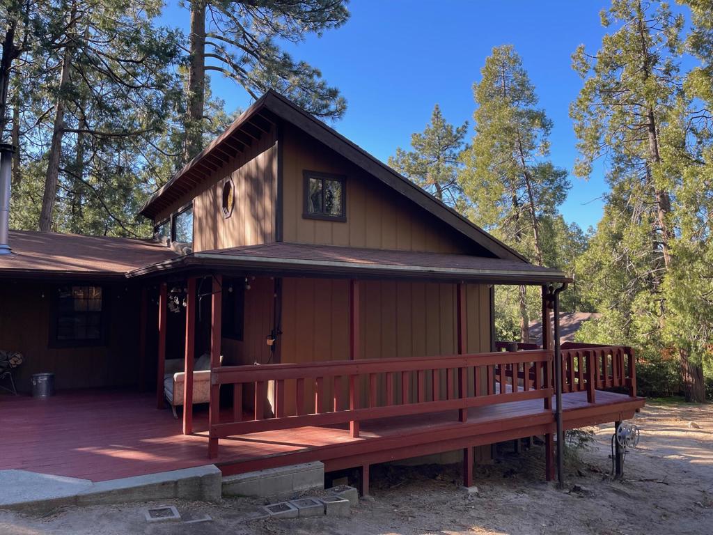 Fern Cottage – a circa-1956 ranch-style mountain retreat set on a rare, nearly flat 0.63-acre parcel just a short walk to the Village of Idyllwild. Fully fenced and ideal for pets, the property offers a 2-bedroom + loft, 1-bath layout, plus a detached barn-perfect for an art studio, office, or creative retreat-with an attached workshop for tools and gear.The rustic interior features knotty pine walls, beamed ceilings, and a wood-burning stove, creating classic cabin warmth. An efficient kitchen with knotty pine cabinetry and butcher-block counters opens to a light-filled dining area surrounded by windows, flowing into a comfortable living room and adjacent 3/4 bath. A generous laundry and storage room adds everyday functionality.Relax on the inviting front porch or enjoy the serene, wooded setting from the rear deck. Ideal as a full-time residence or weekend escape, Fern Cottage offers privacy, space, and walk-to-town convenience-an increasingly rare combination in Idyllwild.
