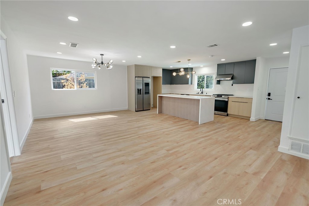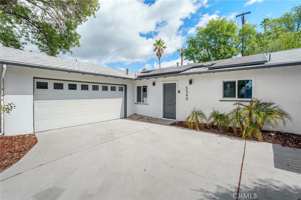 Fully remodeled 4-bed, 2-bath home in sought-after Woodland Hills. This modern retreat features high ceilings, recessed lighting and new waterproof luxury vinyl plank floors throughout. The open living area centers around a sleek fireplace and flows into a chef’s kitchen with quartz countertops and stainless steel appliances with smart Wi-Fi features. The primary suite offers a large walk-in closet, backyard access and a spa-style bath with dual vanities, walk-in shower and standalone soaking tub. Three additional well-sized bedrooms are located on the other side of the house, surrounding a second luxurious bathroom. Enjoy sunny days by the pool in your private backyard oasis, and add outdoor dining and tropical landscaping for your California dream home. Upgrades include new copper plumbing, upgraded electrical panel (2014), Tesla solar panels, dual-pane windows, finished two-car garage with epoxy floors, newer HVAC and water heater. Conveniently located near the 101, Westfield Topanga, Kaiser and Warner Center – this move-in-ready home blends style, comfort and location.