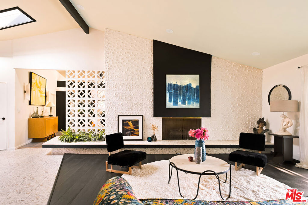 A rare architectural offering in Upper Ladera Heights, this striking mid-century modern home was designed by architect N.D. Ferzacca in partnership with Robert L. Earl. Thoughtfully reimagined with style and taste, the residence blends iconic mid-century elements with refined contemporary finishesoffering a sophisticated setting for modern California living.Upper Ladera Heights, rich in architectural history, emerged in the postwar era as a hub for modernist design. Noted architects such as Gregory Ain, Robert L. Earl, N.D. Ferzacca and Charles W. Wong envisioned homes that embraced the optimism and indoor-outdoor lifestyle of Southern California.Inside, the original terrazzo entryway opens to soaring ceilings and a spacious open floor plan. A striking double-sided floor-to-ceiling fireplace connects the formal living, dining, and den areas, creating a warm and flowing interior. Breeze block details highlight a raised planter and terrazzo hearth, while new skylights and expansive glazing fill the home with natural light.The chef’s kitchen is a showpiece with Sub-Zero and Miele appliances, wine cooler, custom oak cabinetry and high-end finishes. An island with dramatic custom alabaster light fixtures offers seating for six. A walk-in pantry and laundry area provide added convenience.Only the second time on the market, the home offers four bedrooms and three stylishly remodeled bathrooms. Upgrades include a newer roof, gutters, HVAC system and ducting, two tankless water heaters, 31 solar panels, an EV charger and drought-tolerant landscaping a true turnkey residence.The backyard has been completely transformed into a private resort-style retreat. The grounds feature a refinished freeform pool, an outdoor shower framed by breeze blocks, mid-century-inspired pavers and low-maintenance turf – designed for relaxation and entertaining.This timeless home blends architectural heritage with modern comfort. Perfect for mid-century enthusiasts and those seeking an elevated design-forward lifestyle, this property invites you to live boldly and beautifully. Just three miles from Silicon Beach and close to SoFi Stadium, beaches, Playa del Rey, Culver City, LAX and the 405. The home sits in a peaceful enclave – California living at its best.
