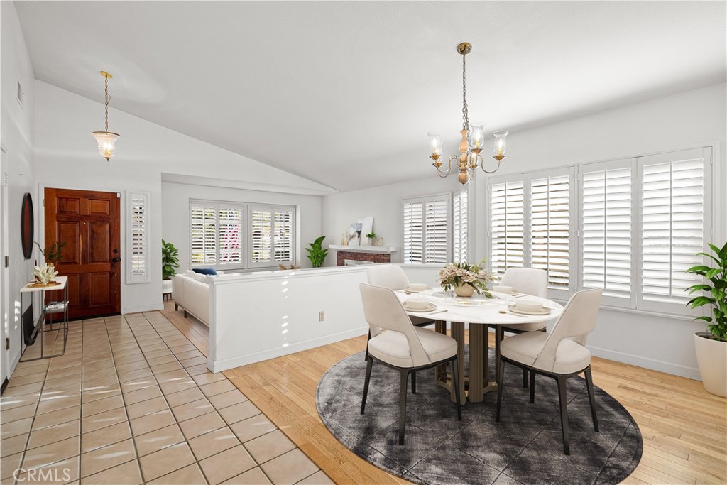 Single-story pool home located on a quiet cul-de-sac within the gated Emerald Ridge at Live Oak community. The front yard features a manicured lawn, brick ribbon walkway, brick planters, RV access, and a covered porch entry. The front door opens to a bright interior with vaulted ceilings and a tiled entry. The formal living room is positioned at the front of the home and offers hardwood flooring, a brick fireplace with mantel, and plantation shuttered windows, including a one overlooking the front yard. The adjacent dining room features a chandelier and additional shuttered windows with side yard views. The open kitchen includes wood cabinetry, granite countertops, and recessed lighting. A center island with cooktop, pendant lighting, and countertop seating connects the kitchen to the family room, which features vaulted ceilings, tiled flooring, and a sliding glass door providing direct backyard access. The primary suite offers vaulted ceilings with ceiling fan, hardwood flooring, a walk-in closet, and a spanning sliding door with plantation shutters opening to the backyard. The primary bath includes dual sinks with granite counters, a walk-in shower with glass enclosure, and a separate soaking tub. Two additional bedrooms feature wood flooring, vaulted ceilings, and spacious closets. A hall bathroom and a dedicated laundry room with cabinetry and backyard access complete the interior. The backyard offers a pool and spa with brick coping and concrete decking, a covered patio structure, a large grass area, RV parking with an extended side yard, mature landscaping, perimeter block walls, and a hillside backdrop. HVAC is newer.