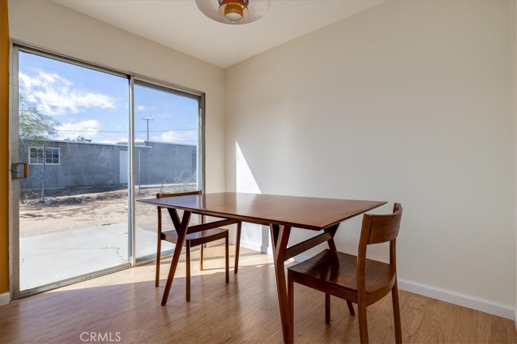 Discover this beautifully updated single-family home in the desirable Chocolate Drop neighborhood of 29 Palms. Thoughtfully reimagined with a mid-century modern aesthetic, this home combines timeless design with fresh, contemporary upgrades. Ideally located near schools, the library, the farmer’s market, hip downtown shops and dining, and just minutes from the East Entrance to Joshua Tree National Park, it offers both style and convenience. Inside, you’ll find brand-new wood grain luxury vinyl plank flooring throughout, paired with stylish new light fixtures that complement the home’s modern design. The fully remodeled kitchen showcases custom cabinetry, quartz countertops, a new sink, LED under-cabinet lighting, USB outlets, and stainless steel appliances including a smart gas range with matching hood. The space is also dishwasher ready for added functionality. The bathroom has been completely redone with all-new plumbing, sink, tile, flooring, shower, and toilet—every detail thoughtfully upgraded. Mitsubishi mini-splits with a single condenser efficiently cool and heat the entire home, but there is also a swamp cooler and gas wall heater for additional efficiency. Offered furnished, this move-in-ready property is a versatile opportunity: an ideal affordable primary home, a desert retreat near Joshua Tree, or a strong long-term rental investment in a growing market. With style, comfort, and functionality already in place, this home is ready to welcome its next chapter.