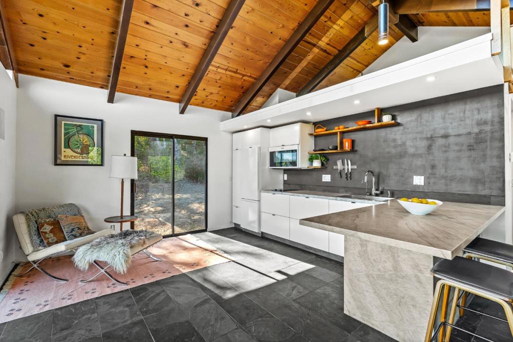 Tucked away along the Corralitos Wine Trail, just minutes from Ferrari Ranch, Windy Oaks Winery, and the Corralitos Market, this 12+/- acre sanctuary offers the perfect balance of nature and comfort. Completely renovated with thoughtful and high end finishes, the home feels both grounded and elevated. Inside, the main living space is bright and airy with tons of natural light and vaulted beam ceilings that create an inviting, open atmosphere. The kitchens Perla Venata counters bring in soft, natural textures, while the bathrooms travertine shower adds a spa like touch. Soak in breathtaking views of the Monterey Bay from the loft bed when you wake up in the morning, and from the brand new deck as the sun sets. The detached studio with large sliding glass doors and its own bathroom offers abundant natural light and is perfect for guests or a private workspace. This property invites you to slow down and connect. Wander your own private mountain biking trails, practice yoga, have a picnic under the trees, or simply breathe in the quiet. With room for expansion and plenty of open space, the possibilities are endless. Whether you are seeking a private sanctuary, a vacation getaway, or a one of a kind investment, this mountain retreat offers it all.