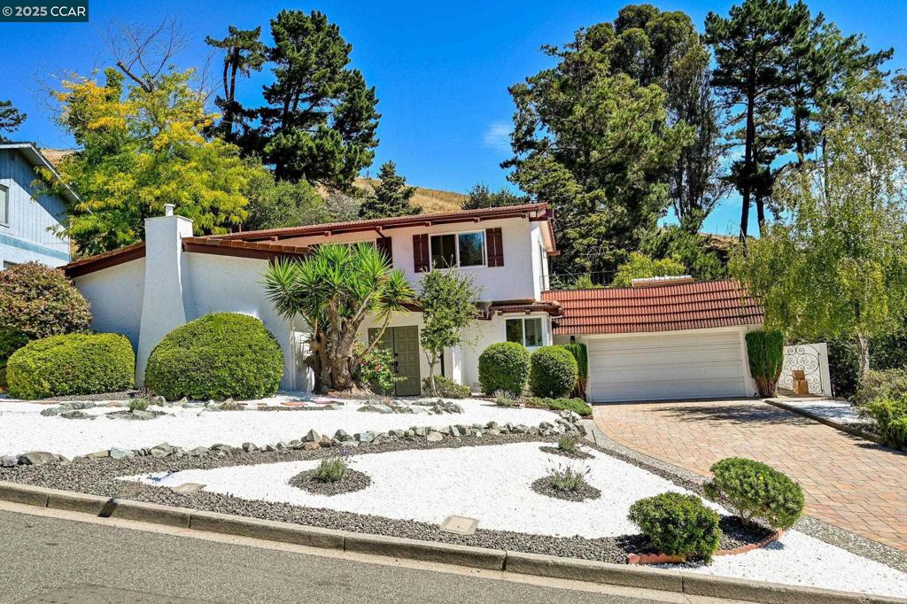 Price Improvement! Spanish-Style Charm in Coveted Moraga Location – Positioned on a peaceful lot near the end of a quiet cul-de-sac, this two-story Spanish-style home offers approximately 2,420 square feet of stylish living on a generous .46± acre parcel. With four bedrooms and three full baths, the residence blends timeless character with modern updates, including a remodeled kitchen with new white cabinetry, gorgeous countertops, stainless steel appliances, subway tile backsplash, new flooring, and LED lighting (August 2025). The kitchen opens seamlessly to the family room and dining area, creating an inviting great-room feel, highlighted by hardwood floors and a wood-burning fireplace. A spacious formal living room with vaulted ceilings offers a separate gathering space, ideal for entertaining. The primary bedroom opens to a large patio with sweeping views of the Moraga hills. Additional highlights include all new windows and sliding doors, an updated primary bathroom, fresh interior paint, new light fixtures, and new carpet (August 2025). Located near Los Perales Elementary and other top-rated schools, the Moraga-Lafayette Trail, Moraga Country Club, and the Sunday Farmer’s Market, this home combines comfort, style, and an unbeatable location.