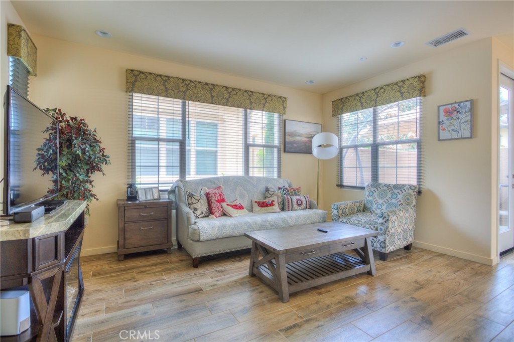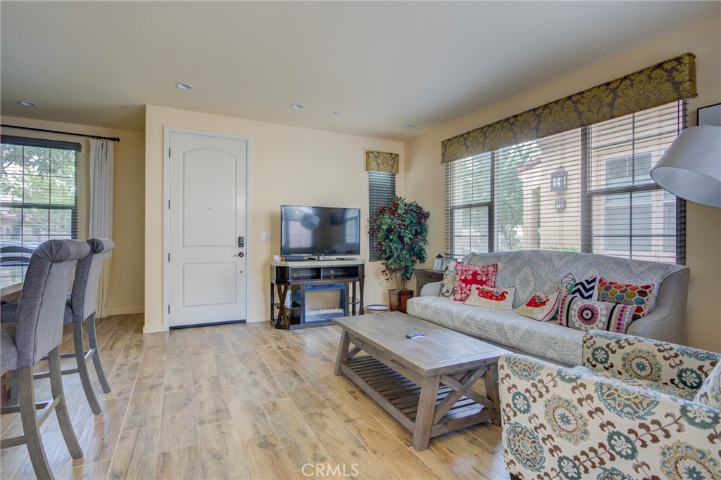 Built in 2015 by **California Pacific Homes**, this **turnkey Zinnia Plan X end-unit townhome** is located in the highly sought-after **Cypress Village community of Irvine**. Designed for both comfort and versatility, the home features **4 bedrooms and 3 bathrooms**, including a **main-floor bedroom and a handicap-accessible bathroom**. Flooded with natural light, the open-concept first floor boasts **hardwood flooring**, **recessed lighting**, and a spacious **family room** that flows seamlessly into the upgraded kitchen and dining area. The kitchen is beautifully appointed with **shaker-style cabinetry**, **sleek quartz countertops**, **tiled backsplash**, a **large island with bar seating**, and **stainless steel appliances**. Upstairs, you’ll find three generous bedrooms, including a **primary suite** with a **walk-in closet**, **dual vanities**, and a **large walk-in shower**. The upstairs **laundry area** includes a **stackable washer and dryer** for convenience. Enjoy outdoor living in the **private side yard**—perfect for relaxing or hosting a BBQ. Additional features include a **two-car attached garage** and plenty of guest parking. Residents have access to **resort-style amenities** such as pools, parks, tennis courts, and scenic walking trails, with easy access to major freeways (5/405/133), shopping destinations like **99 Ranch Market, Woodbury Shopping Center, The District, and Irvine Spectrum**, as well as the **Irvine Train Station** and **John Wayne Airport**. Located within **Irvine’s award-winning school district**, this home offers modern comfort, prime location, and low Mello Roos—making it a truly exceptional place to call home.