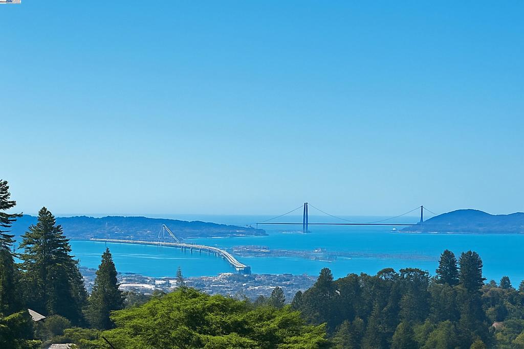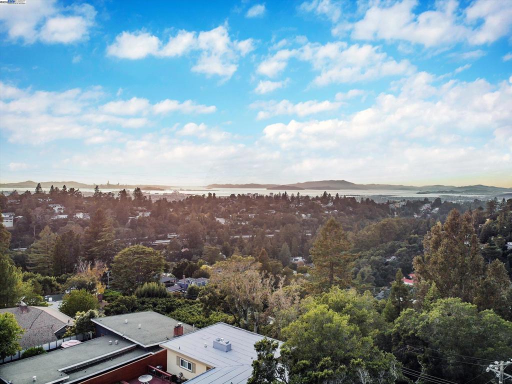 Perched on a sprawling double lot in the heart of Montclair, this exceptional residence offers serene privacy and a front-row seat to the Bay Area’s most breathtaking sunsets. Completely refreshed and move-in ready, it features a light-filled kitchen with top-end appliances, granite countertops, and skylights. The main living area showcases a dramatic wall of windows framing panoramic views from the Golden Gate to the Bay Bridge and Alcatraz. A wood and gas fireplace adds warmth, while sliding doors open to an expansive Ipe wood deck for seamless indoor-outdoor entertaining. The tranquil primary suite includes a spa-like en-suite bath and French doors leading to the wraparound deck. A hydraulic elevator ensures effortless single-level living with direct access to the two-car garage. The fully fenced lower lot, shaded by mature trees, offers a private retreat with an automatic driveway gate. Owned solar, a new IB membrane roof, and proximity to Montclair Village complete this rare and remarkable offering.