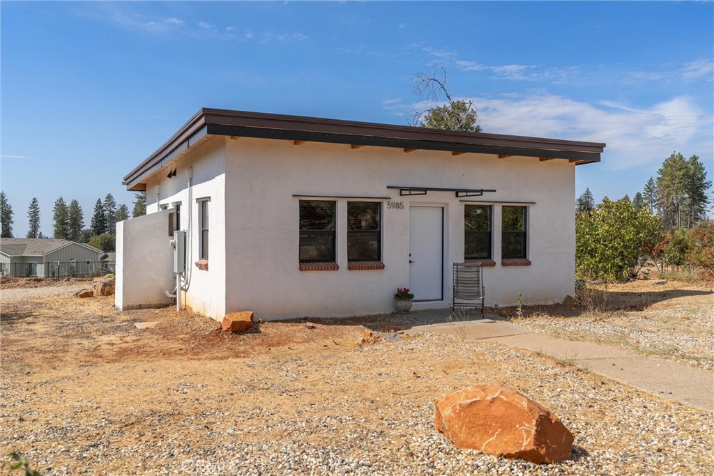 Modern Mediterranean Retreat in Downtown Paradise. 1 Bed | 2 Bath | 800 Sq Ft | 0.17 Acre Lot | Built in 2023. Discover this thoughtfully designed Mediterranean-style home nestled in the heart of Paradise. Built in 2023 with fire safety and energy efficiency in mind, this 1-bedroom, 2-bath retreat offers a unique blend of style, sustainability, and convenience. Key Features: Concrete block construction with added insulation for enhanced quiet and thermal performance; Colorized concrete flooring for durability and modern flair; Tongue-and-groove pine ceilings with exposed wood beams for warmth and character; Stylish glass fixtures throughout the home; Stainless counter and sink for ease and style; Stucco exterior finish for a clean Mediterranean look; Energy-efficient systems including a heat pump water heater and mini-split HVAC; Partially fenced yard with room to personalize or expand; Ample street parking for guests; Close proximity to local amenities, including tennis courts and a track—perfect for active lifestyles. Previously used as a rental, the seller is ready to move on to their next project. Whether you’re looking to downsize, invest, or enjoy a peaceful retreat, this property offers a rare opportunity to own a modern, fire-conscious home in a vibrant community.