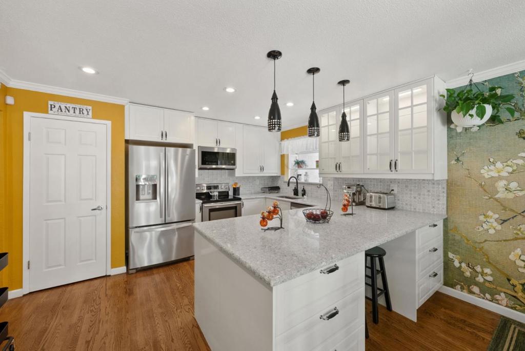 Welcome to 5988 Tuscarora Court, a beautifully updated 3-bed, 2-bath home nestled on a quiet cul-de-sac. Situated on a 6,240 sq ft lot, this 1,232 sq ft home features dual-pane windows, hardwood floors, copper plumbing, central heating and A/C. The open-concept kitchen and dining area boast quartz countertops, designer tile backsplash, stainless steel appliances, and pendant lighting. Floor-to-ceiling glass panels flood the space with natural light and open seamlessly to the backyardperfect for indoor-outdoor living. An inviting living room centers around a gas-log fireplace. The primary suite offers 3 custom wardrobes and a remodeled ensuite bath, while the hall bathroom echoes the same modern touchesmodern sinks, designer tile, and dual-flush fixtures. Step outside to a landscaped retreat; 10′ × 13′ louvered-roof pergola, fire pit table, tranquil fountain, lawn, patios, 2 storage sheds, 6 fruit trees (cherry, nectarine, lemon, apple, apricot, and grapefruit). The finished 2 car garage includes an epoxy floor, washer/dryer, 2nd refrigerator, utility sink, and built-in cabinets for storage. Note: Highways 85, 101, and 17, Almaden Lake Park, Kaiser, & Oakridge Mall. Zoned for highly regarded Oak Ridge Elementary, Herman Middle, and Santa Teresa High School (buyer to verify).