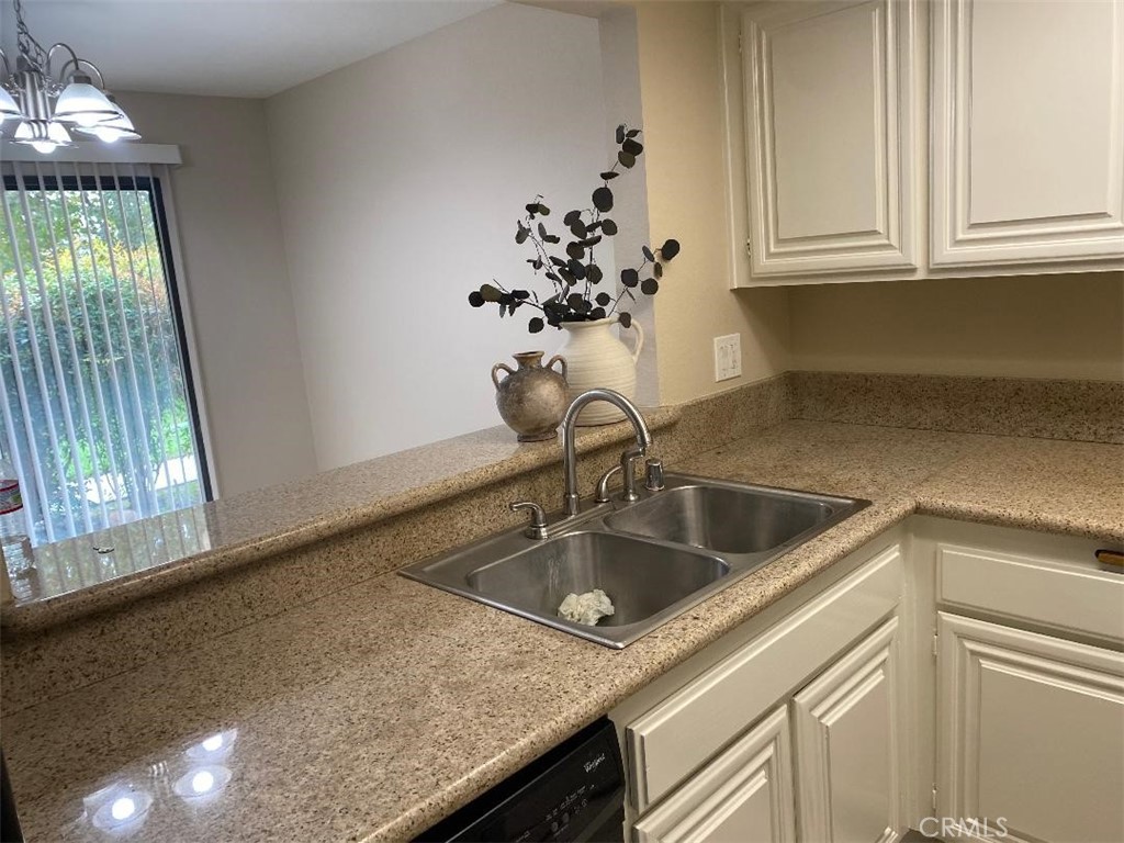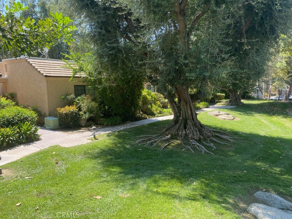 This unusual single story 2 bedroom and 2 full bathroom unit is a charmer. It has the unusual feature of having its own washer and dryer hook ups located in master closet, so the HOA laundry facility is not required, but it is still available. Air conditioner and water heater fairly recently replaced. Quiet community with tall trees. HOA has a community pool and jacuzzi. This unit has a one car garage as well. The unit has a birds eye view of the community below. The views and feel of the community are very desirable and peaceful. New carpet to be installed on October 8. Interior has been painted and also has new blinds.