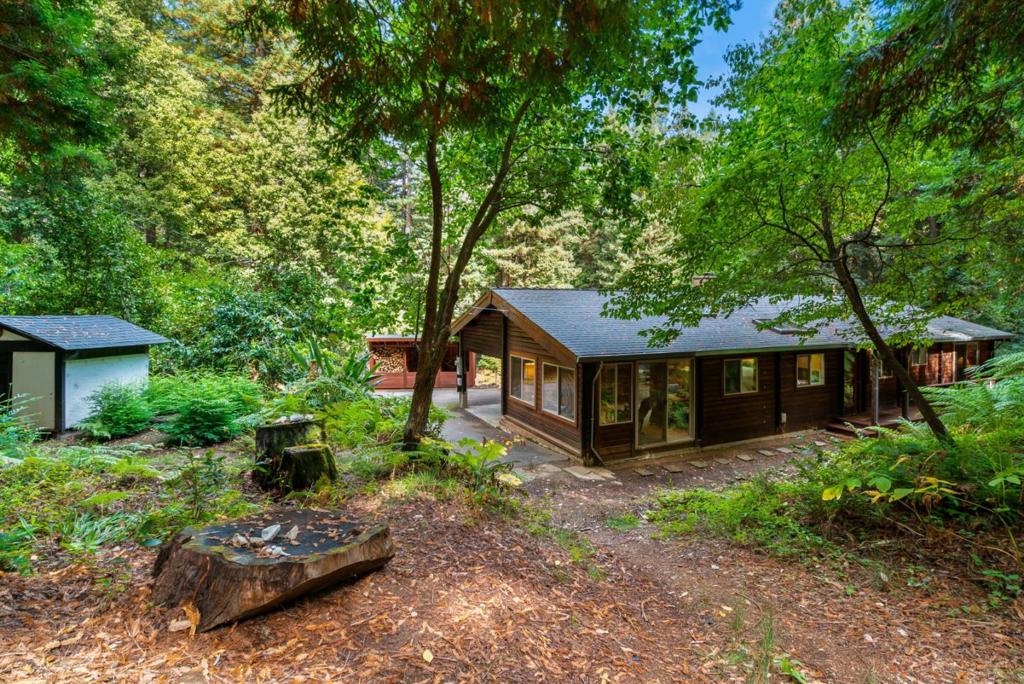 Escape the hustle and bustle of the busy Bay Area in this country retreat. Located only minutes from Highway 9 and Ben Lomond shopping, this 1,458 square foot, three bedroom, one bathroom log home exudes charm. Built-in knotty pine bookshelves create a library-like setting in the family room. A fireplace in the living room as well as forced air will keep you cozy on winter nights. Multiple skylights throughout the home create an abundance of natural light, and there are views of greenery from every window. There is a huge pantry in the separate laundry room so that you can stock up. A wide front porch overlooks a fully fenced and sun-drenched expansive flatter lawn area, perfect for creating a vegetable garden. Several venerable apple trees provide both ambiance and edible fruit. Carport and several sheds for extra storage. Situated on 30+ private acres, with a spring for water and a passing septic system, this home would be a wonderful year-round dwelling and provide a private escape during the hot summer months. This retreat is the place to create wonderful memories!