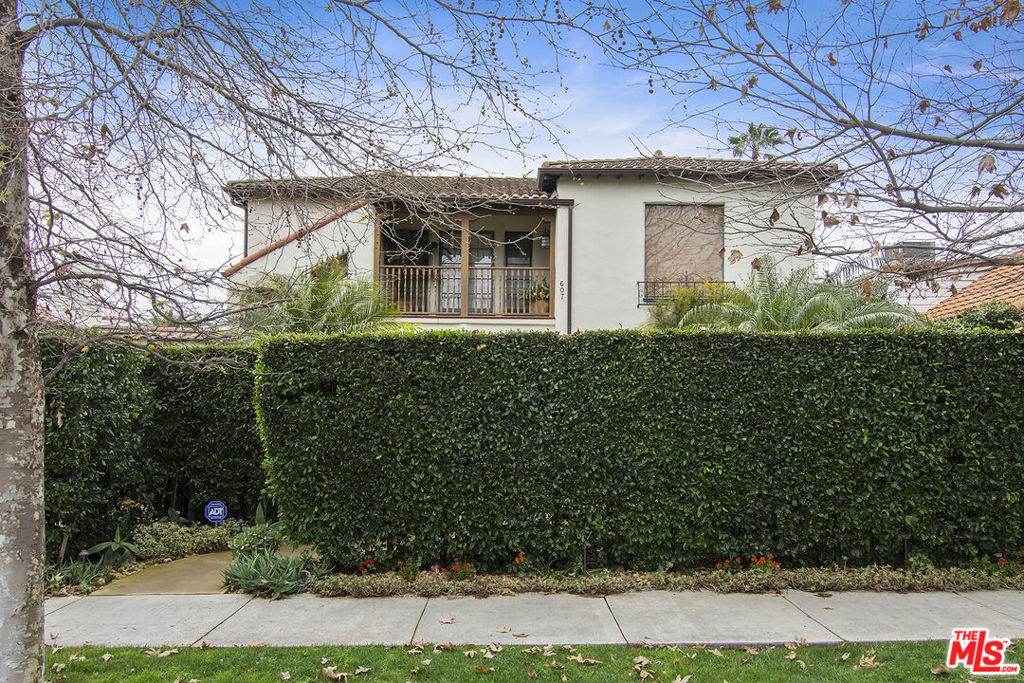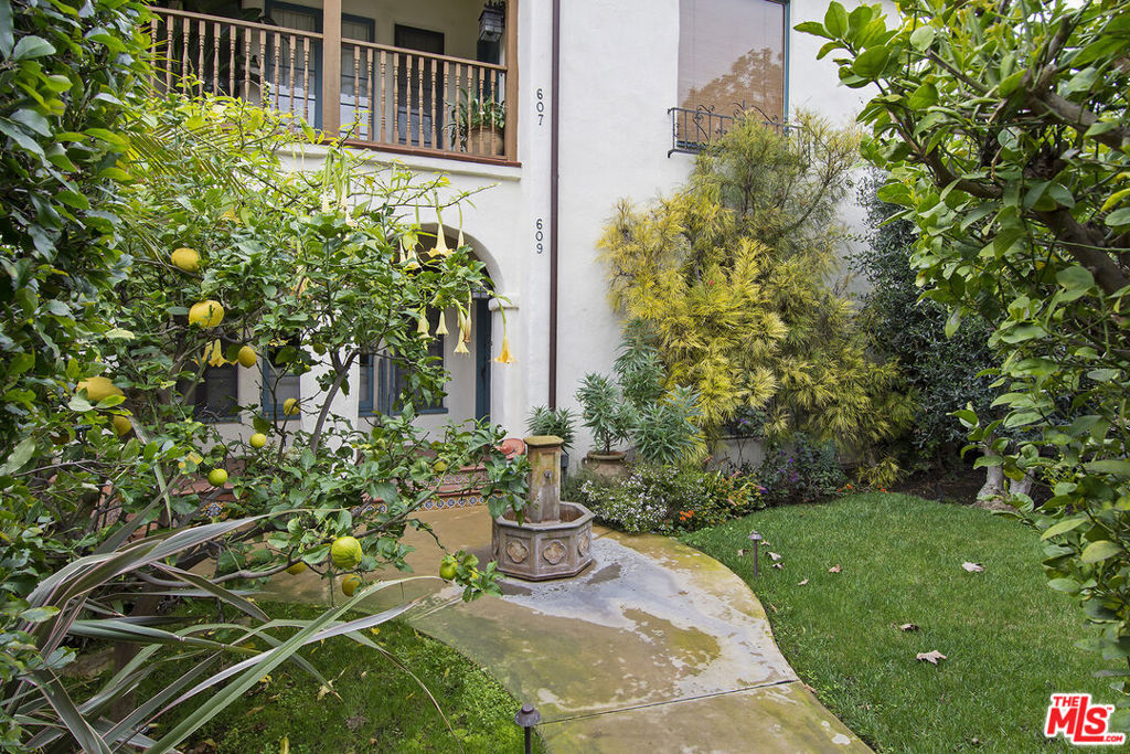 Light and bright Upper unit, in a charming Spanish duplex. Formal living room features original Batchelder fireplace, hardwood floors , and beamed ceilings. Formal dining room, separate breakfast room and updated kitchen with stainless steel appliances. Carrera marble tiled bathroom with separate tub and shower with bench. Laundry room with washer/dryer located inside unit. Central HVAC and available alarm. Gated drive with two car garage. Stunning backyard Minutes to Melrose, Beverly Blvd, Robertson and the Sunset Strip.