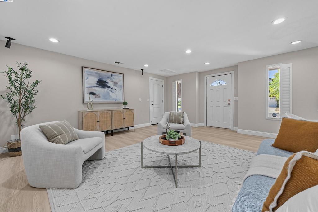 Discover this beautifully updated modern home featuring a bright and open floor plan, elegant finishes, and thoughtful upgrades throughout. The sun-filled formal living room boasts gleaming hardwood floors, recessed lighting, and built-in surround sound—perfect for relaxing or entertaining. The open-concept kitchen and family room provide the ideal gathering space, complete with a large center island, custom cabinetry, and a built-in wine fridge. Upstairs, the primary suite offers dual closets and a spa-inspired marble bathroom, while two additional bedrooms provide versatility for family, guests, or a home office. Enjoy year-round comfort with a whole-house water softener system, and unwind in the low-maintenance backyard featuring a cozy outdoor fireplace—ideal for dining al fresco or evening relaxation. Stroll to nearby parks, tennis courts, and vibrant downtown Pleasanton. With easy access to I-580/I-680, the ACE train, and award-winning schools, plus no HOA fees, this move-in-ready home truly checks all the boxes for modern Pleasanton living.