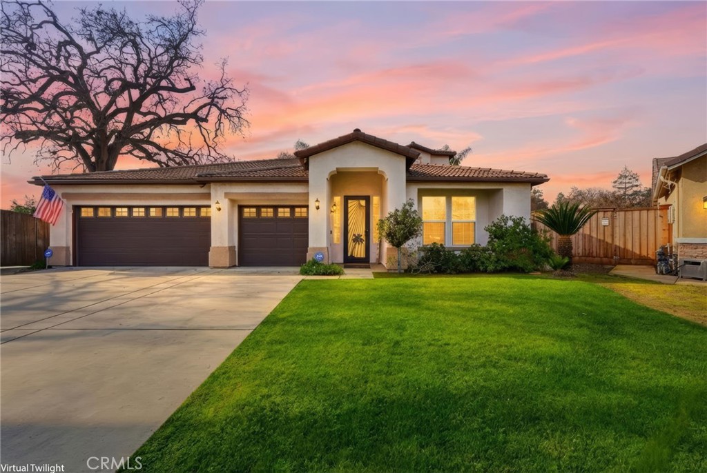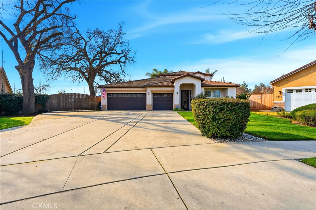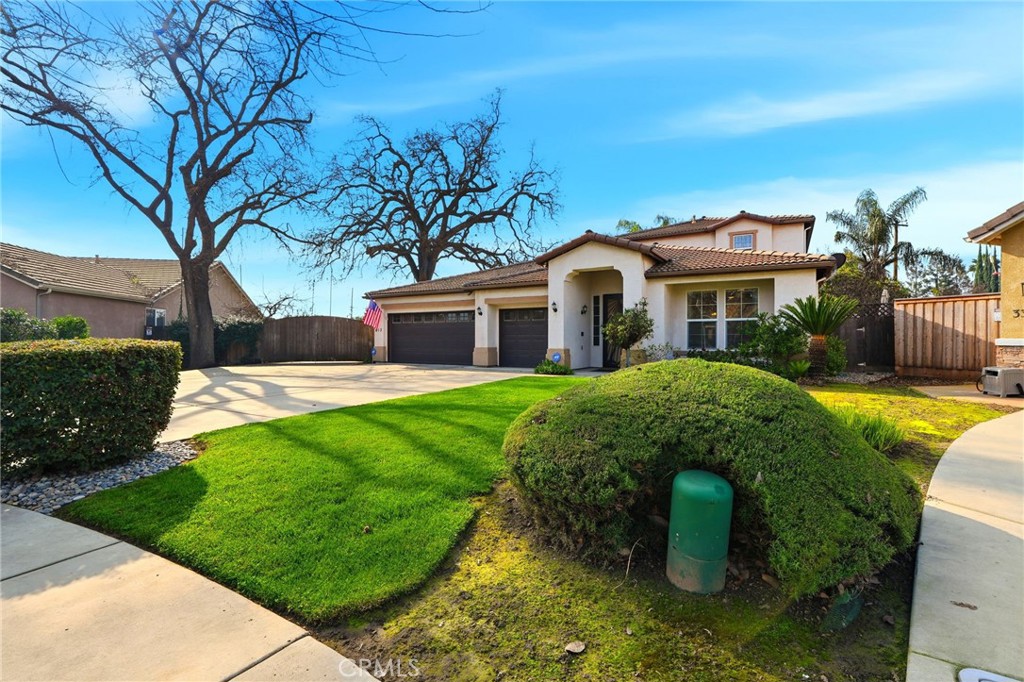 Positioned in a quiet corner of a well-established Visalia neighborhood, this home offers the perfect balance of space, comfort, and outdoor living. Mature landscaping, a welcoming front entry, and a quiet street set the tone, while the proximity to shopping, dining, and everyday conveniences makes daily life effortless. Inside, the home opens to two generous living spaces designed for both everyday living and entertaining. The kitchen and main living areas flow seamlessly, creating an inviting hub for gatherings. The primary suite is conveniently located on the main level and serves as a true retreat, complete with a private office or sitting area directly off the bedroom. Upstairs, the remaining guest bedrooms offer privacy and separation—ideal for family, guests, or flexible use. Step outside to a backyard built for year-round enjoyment. The pool features a heater for extended use, surrounded by ample patio space for dining and entertaining. A pergola adds shade and charm, while the expansive lot allows room for RV parking and additional storage. Whether hosting summer gatherings or enjoying quiet evenings at home, this backyard delivers both function and relaxation.