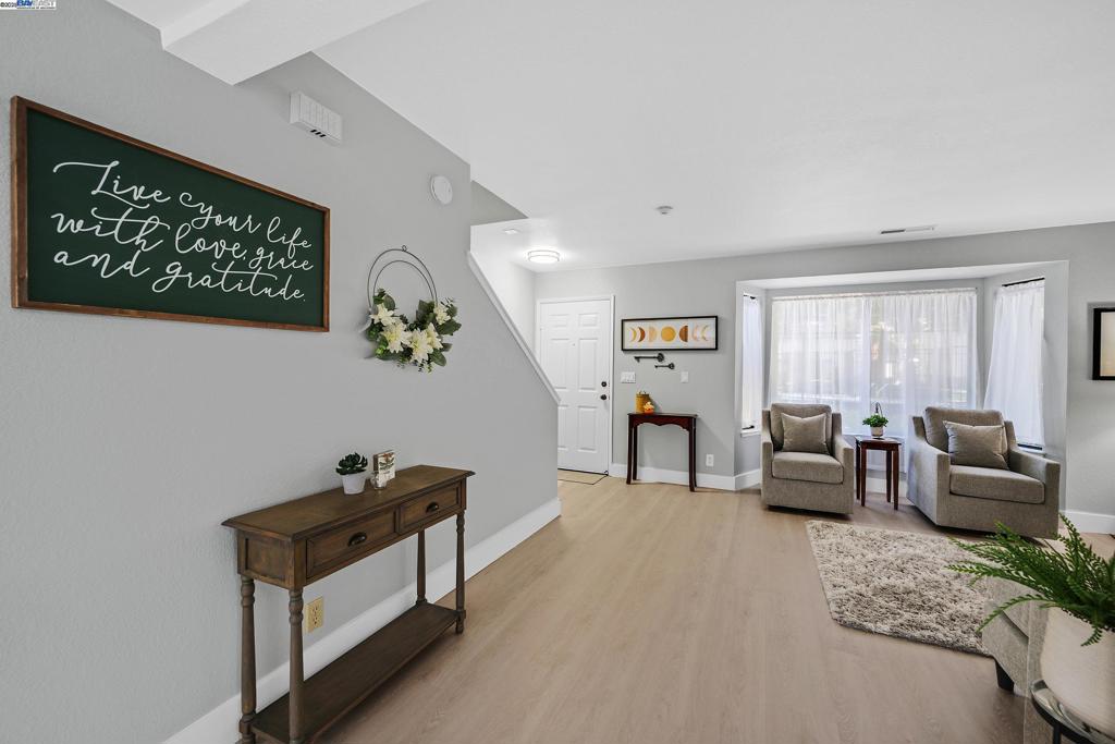 Beautifully updated! Fresh interior paint, all new flooring including luxury vinyl tile in all rooms except the stairs, upstairs hall and bedrooms which features new frieze carpet for durability, hides dirt, soft and reduced sound. New 5″ baseboards too. New lighting. Elegant and stylish remodeled bathrooms with new lights, mirrors, fixtures, vanity tops, sinks and faucets. Primary bedroom has wall of closets with built in organizer. The updated primary bathroom features split bath with new shower surround, pan and faucet. Dual sinks and plenty of cabinet space. Cozy family room with fireplace and mantle and large picture windows for natural light. Dining area has new lighted ceiling fan with remote with huge sliding glass door to patio. Kitchen features waterproof LVT flooring, new stainless steel appliances including oven-range, microwave and dishwasher and lots of wood cabinetry. Designated parking & detached garage in front of unit. In-door laundry too. Ideal for tech workers with access to Dumbarton Bridge and I-880 & AC Transit is minutes away. Close to dining, shopping, library, Coyote Hills Park, Don Edwards Wildlife Refuge & more! OpenHouse 10-18