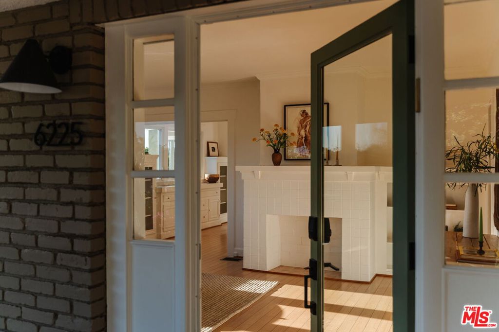 Sun-drenched California craftsman home with a Spanish-tiled pool on a coveted cul-de-sac street in the hills of Highland Park. An arch of bougainvillea frames the front steps to a covered brick front porch; the perfect spot for taking in neighborhood views and enjoying golden-hour evenings. The front garden is brimming with lush native plantings like lavender, lantana, and trumpet vines that spill over the front fence. Inside, the living room is bright and welcoming, with large picture windows that draw in verdant surroundings from every angle. Original Craftsman details have been thoughtfully maintained throughout with built-in bookshelves and a decorative fireplace that anchors the space with warmth and character. The dining room connects the living and kitchen with ease and features the original built-in hutch that frames a set of windows overlooking the pool. The generous chef’s kitchen is both functional and inviting, with new butcher block countertops, updated appliances, and a breakfast nook that looks out to sweeping treetop views. The primary bedroom feels serene and tucked away with a spacious walk-in closet and French doors that open to a private patio. The full bath has been beautifully reimagined with soft-colored concrete walls and a spa-like soaking tub. A second light-filled bedroom with oversized closet completes the main residence. A detached garage has been thoughtfully updated with a full facade of French accordion doors and split AC unit that keeps the space temperate and cozy year-round. The flexible bonus space is ideal as a studio, office, or creative retreat. Step out to the backyard and a mature tree shades an expansive brick patio with hillside views on all sides. A glistening pool and spa create an idyllic setting for long summer afternoons, evening swims, and effortless entertaining. A covered, EV-ready carport and a long driveway offer ample parking. Ideally located just moments away from the vibrant shops and restaurants of York Boulevard and Figueroa, including Sogo, Modu, Villa’s Tacos, and Arroyo Park with easy access to Amara Kitchen and Garvanza playground. A serene, light-filled retreat with a pool; California living at its finest.