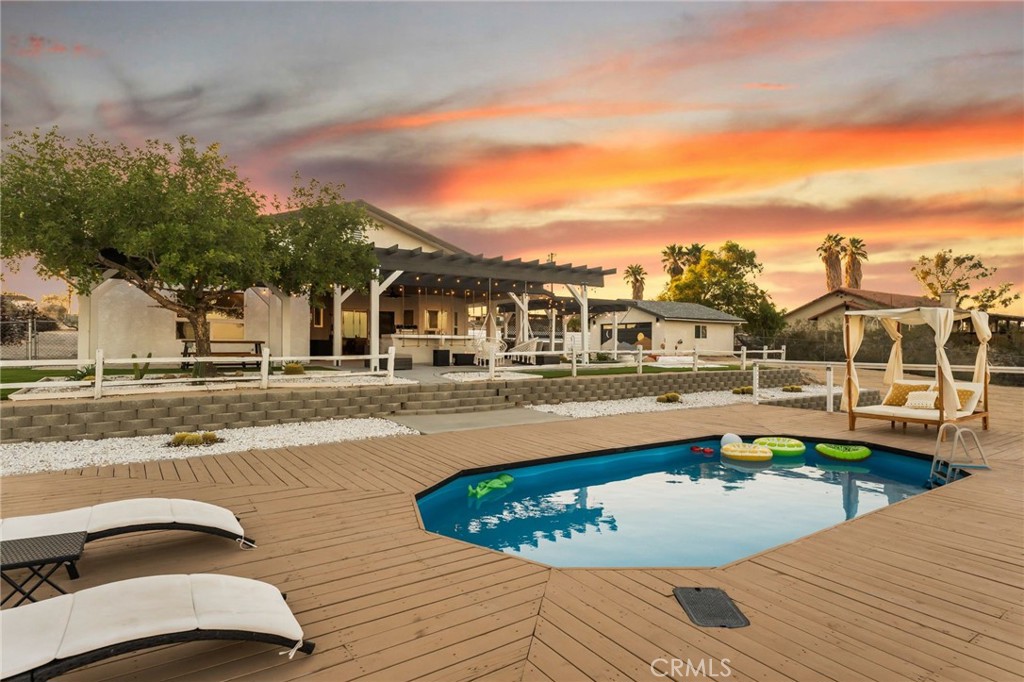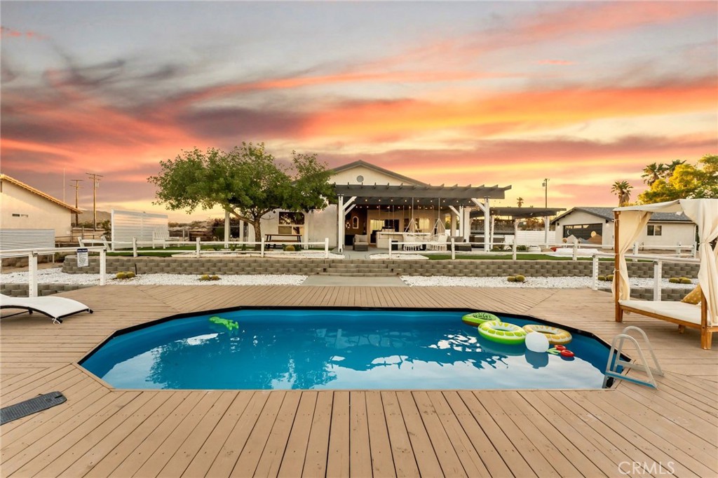 ESCAPE TO THE ULTIMATE RETREAT – A PRIVATE DESERT SANCTUARY ON 1.15 ACRES OF HILLSIDE TERRAIN, JUST MINUTES FROM JOSHUA TREE NATIONAL PARK. This property has been fully renovated to blend MODERN LUXURY with DESERT SERENITY, offering a rare opportunity for a residence, vacation getaway, or high-yield short-term rental. Step outside to BREATHTAKING PANORAMIC VIEWS of desert and mountain landscapes. Relax in the IN-DECK SWIMMING POOL, soak in the HOT TUB WITH THERAPEUTIC JET PACKS, or entertain at the BBQ ISLAND, OUTDOOR KITCHEN, FIRE PIT, AND FOUR LARGE COVERED PATIOS. Outdoor amenities include a PRIVATE FULLY FENCED YARD, LARGE PERGOLA, DECK, AND 220V EV OUTLET. A DETACHED GARAGE adds versatility for storage, studio use, or conversion potential. Inside, the home includes 4 BEDROOMS AND 2 BATHROOMS with 2 KING BEDS AND 3 QUEEN BEDS. Two CENTRAL A/C UNITS plus ceiling fans provide comfort year-round. A spacious living room with large TV, a full dining area, and a RENOVATED KITCHEN WITH BAR complete the interior. Additional property highlights include PAID SOLAR, laundry area, and modern finishes throughout. All furniture is available separately with a $30,000 valuation, allowing turnkey operation if desired. For investors, this is a proven performer: a SUPER ACTIVE AIRBNB WITH 165 VERIFIED 5-STAR REVIEWS, $30,000 IN FUTURE BOOKINGS ALREADY SECURED THROUGH YEAR-END, and AVERAGING $130,000 ANNUALLY. The Airbnb listing and account will transfer to the new owner, and the seller is offering training for a seamless takeover. Immediate cash flow plus established reputation make this a rare opportunity with excellent CASH-ON-CASH RETURN potential. Whether as a PRIMARY RESIDENCE, VACATION ESCAPE, OR INVESTMENT PROPERTY, 6261 CARODEAN RD IS THE ULTIMATE RETREAT. With paid solar, modern upgrades, resort-style amenities, and proven rental income, it is truly an INVESTOR’S DREAM. BOOK YOUR SHOWING AND EXPERIENCE THIS DESERT OASIS – YOUR ULTIMATE RETREAT AWAITS.