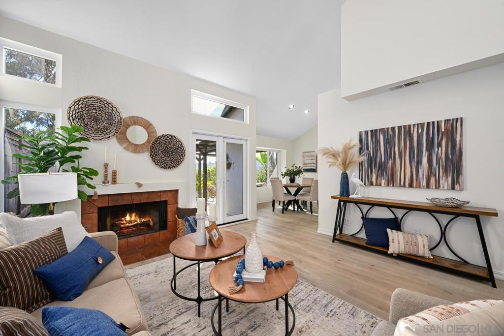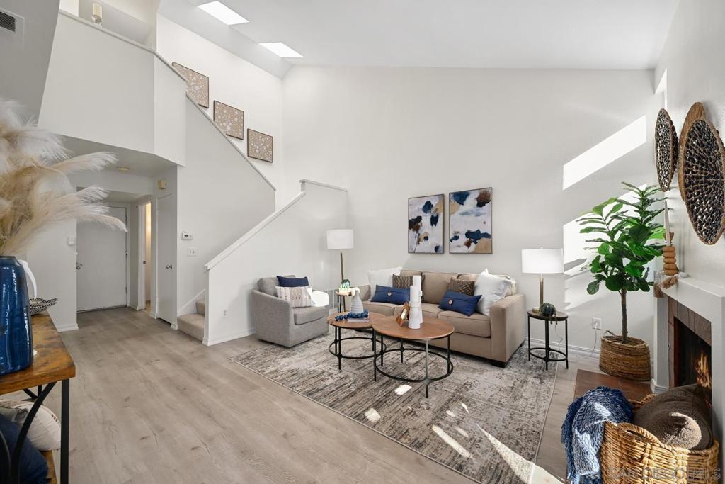 Welcome to University Canyon—one of San Diego’s most desirable communities. This beautifully updated townhome blends modern upgrades with serene canyon views and the convenience of owned solar. Enter to soaring vaulted ceilings and expansive windows that flood the home with natural light. The freshly painted interior highlights the open design, while the living area is anchored by a cozy wood-burning fireplace and complemented by a newer central heating and cooling system for year-round comfort. The updated kitchen features sleek cabinetry and granite countertops—perfectly designed for both style and function. Upstairs, the spacious primary suite offers a walk-in closet and a sunlit en-suite bath with a custom walk-in shower. The washer and dryer have been relocated to the garage, creating extra in-home storage. A two-car garage with built-in cabinets adds even more practicality. Outside, enjoy the privacy of your exclusive-use brick patio, spa, and backyard overlooking Tecolote Canyon and the USD campus—an ideal setting for entertaining or simply taking in sunsets. The peaceful community offers a pool, spa, and direct access to scenic canyon trails for hiking and biking. With its prime location near USD, Fashion Valley, beaches, and major freeways, this is a rare opportunity to own in one of San Diego’s best-kept secrets. Don’t miss your chance to call this canyon-view retreat home.