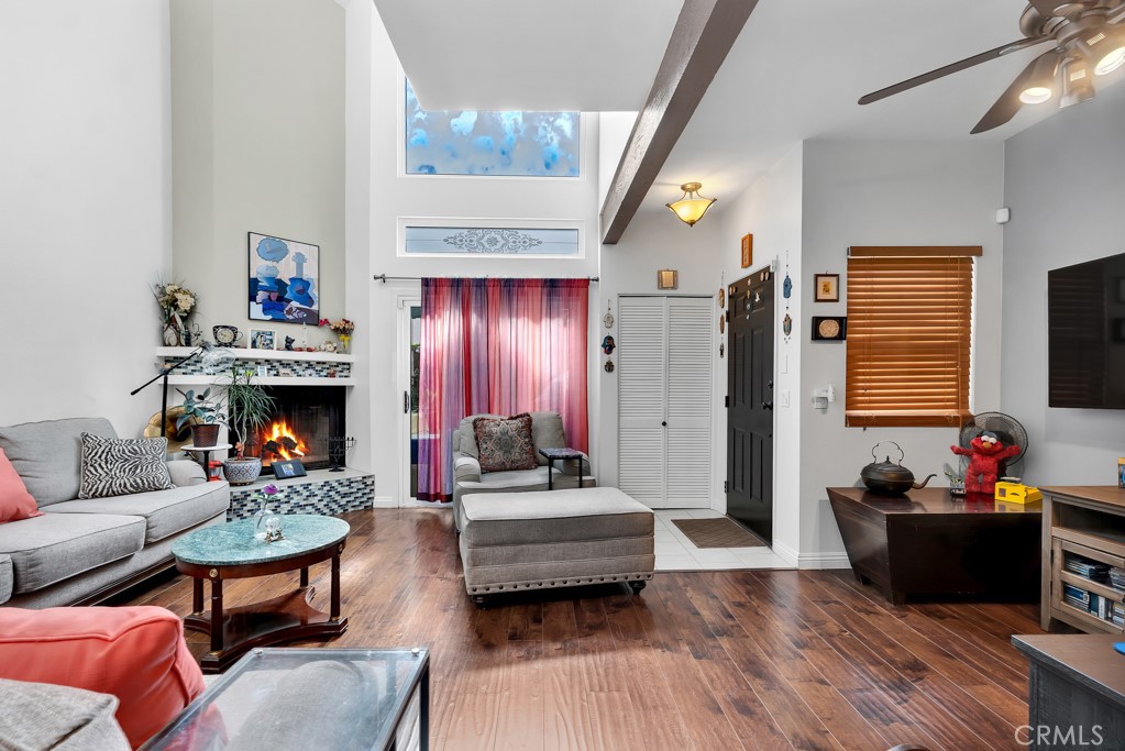 Step into this stylishly updated Tarzana townhouse, where an open-concept living space is highlighted by soaring cathedral ceilings and a warm, inviting fireplace. Thoughtfully remodeled, the home features sleek laminate flooring throughout, double-pane soundproof windows for added comfort and tranquility, and a dedicated dining area ideal for entertaining. The contemporary kitchen is outfitted with stainless steel appliances, quartz countertops, a mosaic glass backsplash, under-cabinet lighting, and custom ceiling fixtures, seamlessly blending function and design. Upstairs, two spacious en-suite bedrooms offer privacy and comfort, along with a convenient laundry area complete with a high-efficiency front-load washer and dryer. Additional highlights include ample storage, central air and heat, and a charming patio just off the living room, perfect for indoor-outdoor living. The property is located within a secure, well-maintained building featuring the ButterflyMX smart intercom system for seamless phone-based access, plus side-by-side parking in a gated garage and guest parking. Ideally situated between Encino and Woodland Hills, the home is directly across from a park and Starbucks, with Ventura Boulevard, Westfield Topanga, and the new Rams Village just minutes away—offering endless shopping, dining, and entertainment options. This is a fantastic opportunity not to be missed; schedule your private showing today.