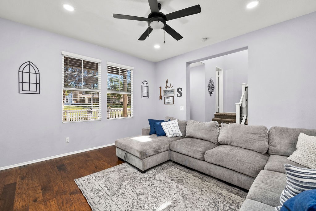 Beautifully upgraded home in the gated community of Liberty Square, ideally positioned in a coveted parkside location facing the community playground and greenbelt — perfect for enjoying outdoor living and neighborhood connections. The home features a charming white picket fenced yard, inviting porch, light-filled living room with fireplace, updated flooring, and new kitchen countertops. The kitchen also offers updated cabinetry, ample storage, generous counter space, and a dining area overlooking a private patio. Upstairs includes two spacious secondary bedrooms, laundry room, and a large primary suite with a recently remodeled bathroom featuring upgraded finishes, soaking tub, separate glass shower, and walk-in closet. Residents enjoy gated security, BBQ and picnic areas, basketball court, gazebo, and lush greenbelt spaces. Turn-key and move-in ready.