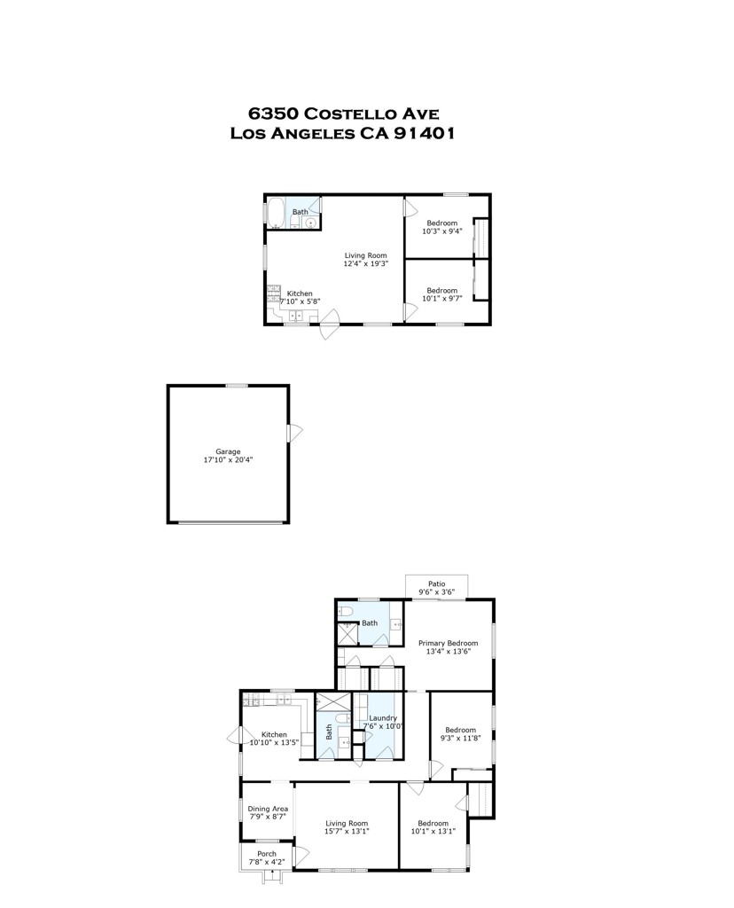 This beautifully updated, 3 bed, 2 bath, 1372 sq ft, 1940s bungalow with detached 2 bed, 1 bath, 710 sq ft Guesthouse/ADU (without permits), & separate 2-car garage, sits in a quiet residential neighborhood in the heart of Valley Glen. Lots of possibilities! Blending vintage appeal & modern convenience, the house boasts a newer AC, raised foundation, hardwood floors, decorative wood siding, & covered front porch, while a wide driveway with an RV/car gate provides access to the detached 2-car garage. Enter directly into a spacious, light-filled living room with a large picture window. A graceful archway connects the living & dining area seamlessly. The kitchen boasts a sleek, black & white aesthetic with recessed lighting, tile floors, white cabinets, a white tile backsplash, black granite counters, black appliances, & back door leading to the yard. Down the hall is a freshly updated ¾ bath with new counter, mirror & shower enclosure & an extra-large laundry room for added utility & storage. Two good-sized bedrooms share the hall bath while a sizable primary suite has brand new carpet, as well as dual walk-in closets, a glass slider to the yard, & an en-suite bath with new flooring, mirror, light fixture, counter, & faucet. Storage abounds throughout the house with closets, linen cabinets, a pantry, & the garage, making the most of the space! The spacious backyard includes several patio areas, walkways, a lawn, a mature shade tree, & abundant fruit trees allowing you to take advantage of fresh produce, better than a farmer’s market, just out your back door. A detached guest house adds versatility with an open-concept great room combining kitchen, dining, & living areas. The two guesthouse bedrooms both have mirrored closets & ceiling fans & share access to a full hall bath. The guest house has its own heater, AC, water heater, & storage shed, making it a perfect space as an ADU or casita, studio space, a home office, gym, or really, whatever you can imagine. A detached 2-car garage provides space for parking & storage. Take advantage of the R2 zoning in the area to further develop the property, utilize the existing guest house, or convert the detached garage to an additional ADU space, all to add additional means of income to the property. The home is well situated near to shopping, dining, entertainment, recreation, & major transportation routes. Don’t miss the opportunity to tailor the space to suit your needs & make this your new home!