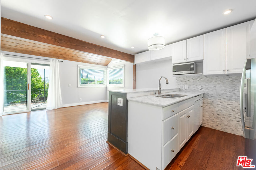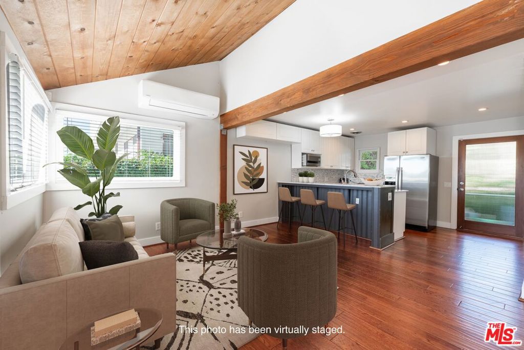 A Hidden Sanctuary in the Heart of Silver Lake – Tucked behind a private gated driveway, this charming Craftsman’s home offers a rare blend of privacy, natural beauty, and city views. Step onto the welcoming front porch and into a bright, open-concept living area that feels instantly serene. The spacious living room flows seamlessly into the kitchen, where you’ll find a bar-style dining area, generous counter space, ample storage, a refrigerator, range/oven, dishwasher, and microwave. The bedroom comfortably fits a king-size bed and includes a ceiling fan and closet storage. The bathroom offers a tub and shower combo, tile flooring, and a vanity. Outside, the property truly shines. A large patio offers sweeping views of downtown Los Angeles, surrounded by mature trees, cacti, and fruit trees that create a lush, peaceful atmosphere. Whether you’re entertaining, relaxing, or simply soaking in the skyline, this outdoor space feels like a private retreat. Additional highlights include a mini-split heating and air-conditioning system, and a separate outdoor laundry room with washer and dryer. This Silver Lake hideaway is a rare gem.