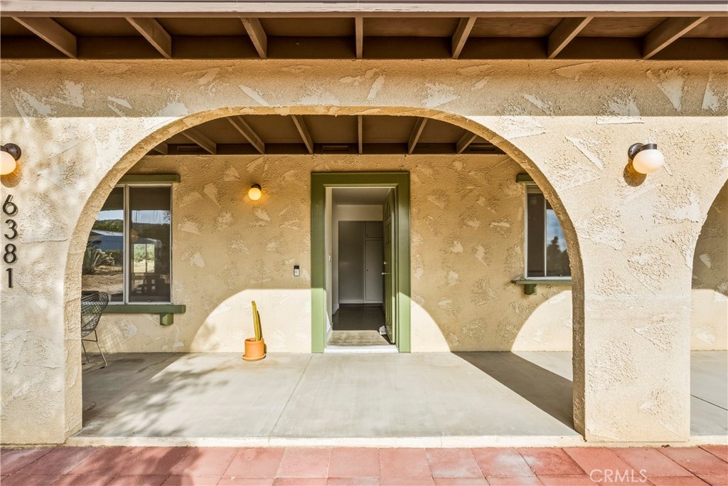 Located in the desirable Western Hills Estates of Yucca Valley, this beautifully upgraded 3-bedroom, 2-bath home offers 1,352 square feet of thoughtfully designed living space on a spacious 0.4-acre fenced lot. Built in 1981 and tastefully enhanced over time, the property combines timeless character with modern finishes. Step inside to find a warm and contemporary interior featuring concrete flooring, energy-efficient LED lighting throughout, and solid core interior doors for added privacy and sound reduction. The remodeled kitchen showcases a sleek Scandinavian-inspired design, complete with rich walnut cabinetry, paneled appliances, and versatile PaperStone countertops that blend sustainability with style. Both bathrooms have been upgraded with custom vanities topped with matching PaperStone surfaces, creating a cohesive and refined aesthetic. The inviting living room features a cozy wood-burning fireplace, perfect for relaxing evenings. Enjoy year-round comfort with central air conditioning and heating. Outside, the property offers mature landscaping and multiple spaces to take in the surrounding views, including a covered front porch and an enclosed back patio ideal for additional living or entertaining space. With a 2-car garage and ample outdoor room to enjoy, this home delivers a perfect balance of comfort, design, and desert charm.