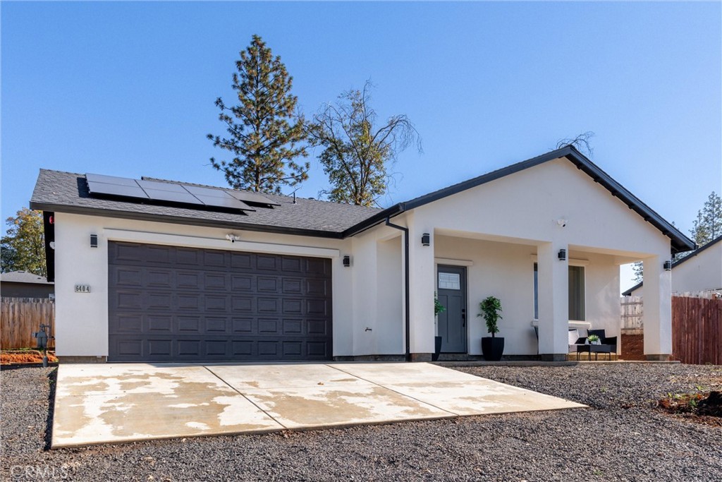 Welcome to a home that blends modern comfort with thoughtful design. This beautifully finished 2-bedroom, 2-bath residence offers an open, inviting layout perfect for everyday living. The impressive kitchen features soft-close cabinetry, a spacious pantry, a large island, and sleek quartz countertops, all flowing into a bright living area centered around a cozy electric fireplace. With 9 ft ceilings and durable LVP flooring throughout, the home feels open and cohesive. The oversized indoor laundry room with built-in cabinetry adds convenience you’ll truly appreciate. The primary suite is a relaxing retreat, offering a spacious layout, a custom walk-in closet, and a stylish bathroom with double sinks, quartz counters, and beautiful tile work. The secondary bedroom provides great natural light, a generous closet, and nearby access to a spacious guest bath designed with the same high-end finishes. An oversized two-car garage offers abundant storage, while the exterior of the property is just as appealing. Enjoy a welcoming covered front porch, large front and side yards, room for RV or boat parking, fenced areas, and a back patio perfect for relaxing or entertaining. Practical upgrades include underground drainage, a sliding glass door to the yard, owned solar, and a brand-new septic system, offering peace of mind for years to come. This home delivers quality, comfort, and modern style—ready for you to move in and enjoy.