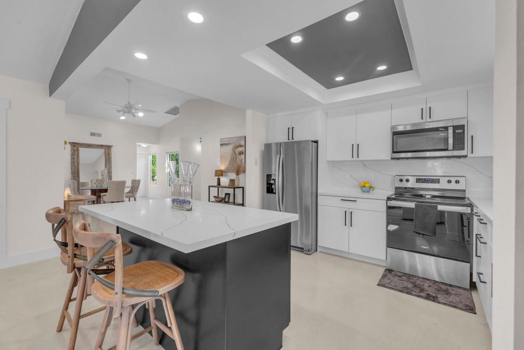 Back on the market! Nestled in the prestigious Mission Lakes Country Club community, this home is ideally positioned along the first hole of the golf course and just a short walk from the clubhouse. A private front courtyard, lush mature landscaping, and an array of fruit trees create a serene, resort-like setting from the moment you arrive.Inside, recent upgrades elevate the home throughout, including new flooring, a beautifully updated kitchen, and fresh interior paint. The light-filled, open living area is framed by large windows and anchored by a cozy fireplace, offering both comfort and style. The redesigned kitchen features generous counter space, ample storage, and a layout that flows seamlessly into the main living spaces, making it ideal for everyday living and entertaining.Just off the living room, an enclosed sunroom provides flexible bonus space, perfect for a den, game room, or additional lounge area. The primary suite serves as a peaceful retreat with a private bath, ample closet space, and a bonus side room ideal for a home office, reading nook, or nursery. A comfortable second bedroom and full bath are well-suited for guests or work-from-home needs.Additional highlights include a large, temperature-controlled storage room, offering abundant space for hobbies, gear, or seasonal items.As a resident of Mission Lakes Country Club, you’ll enjoy access to an array of amenities including the championship golf course, community pool, fitness center, spa, tennis and pickleball courts, and an inviting clubhouse — all just steps from your front door.