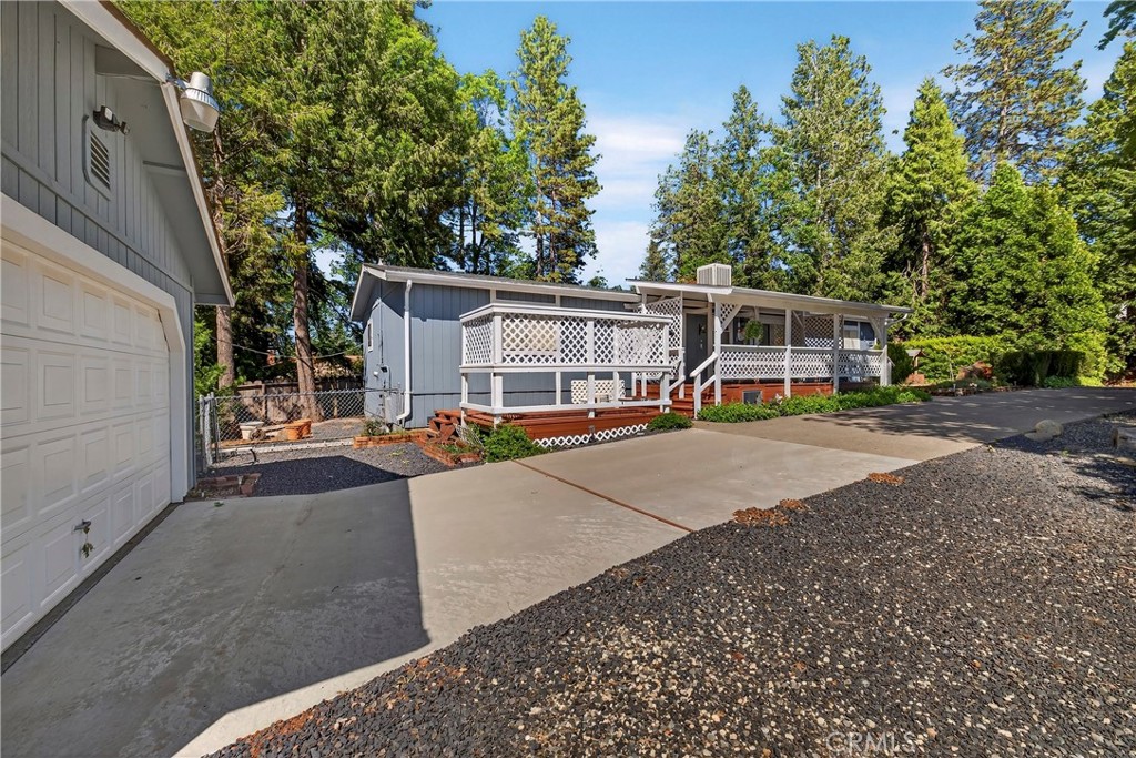 Welcome Home! This 2-bedroom, 2 bath home with a third bonus room is ready for a new owner. Plenty of parking for friends and family plus a 20X24 detached garage. The 226 square foot vaulted covered deck welcomes you and your guests to the home. For those sunny days there is a 12X12 sun deck. Upon entry the spacious vaulted ceiling living room offers a free-standing wood stove and an open floor plan. The light and bright kitchen offers granite counters, 4ft. breakfast bar, vaulted ceilings, skylight, undermount stainless steel sink, built in microwave, free standing oven range, dishwasher and refrigerator. Off the kitchen is a fantastic laundry/utility room with a walk-in pantry. The floor plan has a split primary bedroom on one side and the second bedroom and bonus room on the other. The spacious primary bedroom and bath offer granite counters and a tub/shower combination. The large bonus room offers wainscotting accent walls. Dual Pane Windows throughout the home. Fully fenced side and backyard with an 8ft. chain link gate to access the side yard. The Paradise Owners Association is only $310.00 per year and offers a pool, spa, horseshoe pits, tennis courts, Bocco ball, wonderful hiking trails that are maintained, lounge, billiards room, banquet facilities, playground and fantastic events throughout the year. Close to all Magalia services and located in lower Magalia for a quick drive to Paradise or Chico.