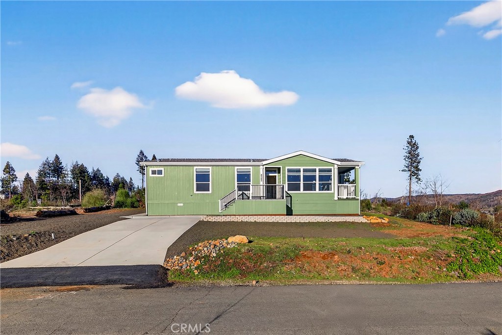 Tucked away on a peaceful cul-de-sac, this beautiful BRAND NEW home brought to you by a local builder, offers a welcoming entry and a thoughtfully designed layout that blends comfort, functionality, and inviting living spaces. The welcoming front porch measures approximately 91 square feet, providing ample space for seating and a perfect spot to relax while enjoying the quiet surroundings. As you step inside, you’re greeted by natural light pouring through the transom windows, filling the living room with a bright and airy ambiance. The kitchen is well-appointed for both everyday living and entertaining and is open to the living room, creating a seamless flow for gatherings and daily life. It features solid-surface countertops, soft-close cabinetry, pull-out wood drawers, Whirlpool appliances, a tile backsplash, and an outlet with type C and USB charging on the island. A pantry with a rain-glass door adds both style and practicality, while the dining area enhances the home’s open and inviting feel. Sliding glass doors in the living room lead to the balcony, which spans approximately 69 inches by 165 inches (about 79 square feet), offering a lovely outdoor extension of the living space—ideal for morning coffee, evening relaxation, or taking in scenic views of Sawmill Peak and the surrounding Sierra Nevada foothills. The laundry room is designed with both gas and electric hookups for the washer and dryer, offering flexibility to suit your needs, and includes direct access to the backyard—ideal for convenience and outdoor living. The home offers three spacious bedrooms, and hall bathroom that includes extra cabinet storage. The primary bedroom features a generous walk-in closet and an ensuite bathroom complete with a step-in shower with sliding glass doors and corner seating, a private toilet area, and dual LED-lighted vanity mirrors. Additional highlights include recessed LED lighting throughout, a concrete driveway and walkway, and two exterior GFCI outlets for added convenience when enjoying the outdoor spaces. Located within walking distance to the Magalia Community Center, South Pines Disc Golf, and Izzy’s Bar & Grill. This home also offers the benefit of being part of the Paradise Pines Property Owners Association (PPOA). PPOA amenities include scenic walking trails, outdoor activity areas, social spaces, versatile sport courts, and a variety of engaging classes ranging from sewing to ceramics—creating a wonderful sense of community and lifestyle.