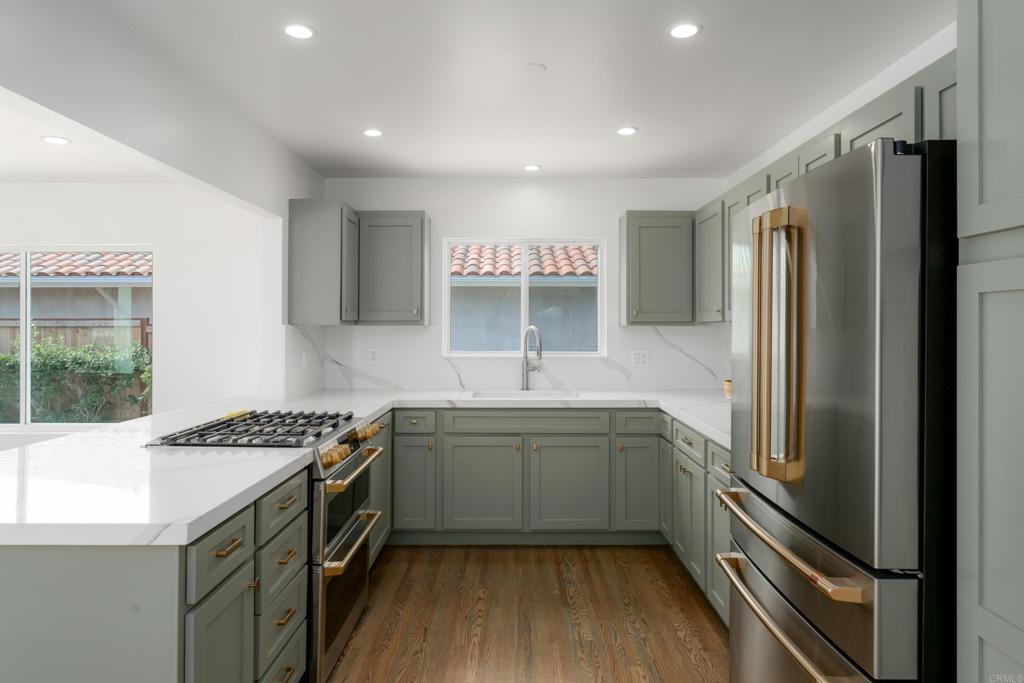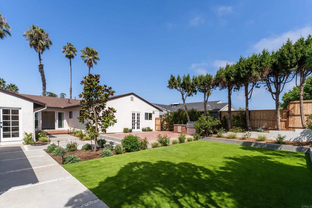 This extensively and very thoughtfully renovated Muirlands Village home has just been completed with a keen eye toward maximizing the joy it will provide, both inside and out, and is now ready for its first occupants! Available for lease long term/unfurnished, this single-level residence features 3 bedrooms, 2.5 baths, a family room, and a living room, all designed for an optimal living experience. The refreshed curb appeal hints at extensive upgrades throughout. The luxurious primary suite includes a large walk-in closet and an expanded bathroom with a “wet room” shower and tub, dual vanities, and stunning finishes. French doors from the primary, family, and dining rooms open to a redesigned exterior with a built-in BBQ, a spacious backyard with artificial turf, a fire pit, and new landscaping. Additional features include new HVAC with central air, multiple fruit trees, a detached 2-car garage, ample driveway parking, and an impressive laundry area. With refinished hardwood floors, updated fixtures, and peek-a-boo ocean views, this home is appealing inside and out. Located in a quiet neighborhood with palm trees and sidewalk-lined streets close to schools, beaches, the farmers market and the village, it’s the perfect place to call home!