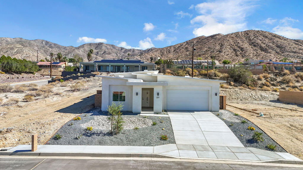 A stunning brand new home four bedrooms, two and a half bath residence perched near the top of the mountain offering views of the San Jacinto mountains. This home combines uniqueness and comfort, with modern amenities and a serene setting.