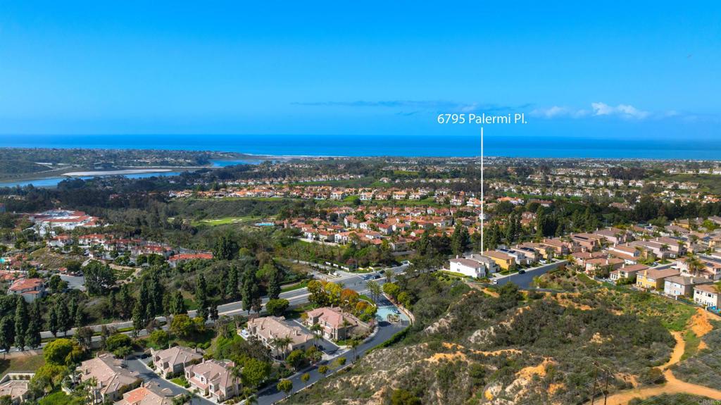 One of the best locations in the gated Cristalla at Aviara! TOP OF THE HILL FEEL! Located near the end of a single-loaded, cul-de-sac street. Backs to beautifully landscaped open space with no rear neighbors. Enjoy mesmerizing PANORAMIC AREA and OCEAN VIEWS! Sought-after plan with main level bedroom and bath. Updated island kitchen opens to family room and features a walk-in pantry and built-in refrigerator. Formal living room with fireplace and volume ceiling. Dramatic staircase, convenient upstairs laundry room, and dual primary suites. Central air conditioning, custom window treatments, thoughtful upgrades throughout. Sun-drenched rear yard looks southwest with inviting private spa. HOA maintains front yard! AVIARA/CARLSBAD SCHOOLS! This home is in move-in ready condition. Directly across the street from the Park Hyatt Resort – and just minutes to the beach!