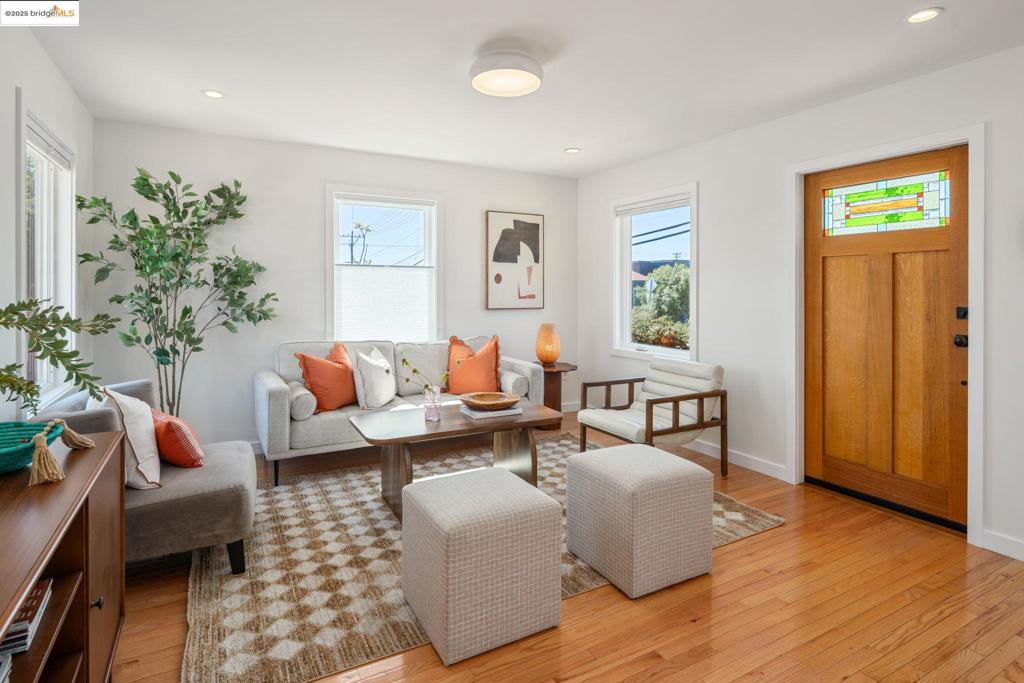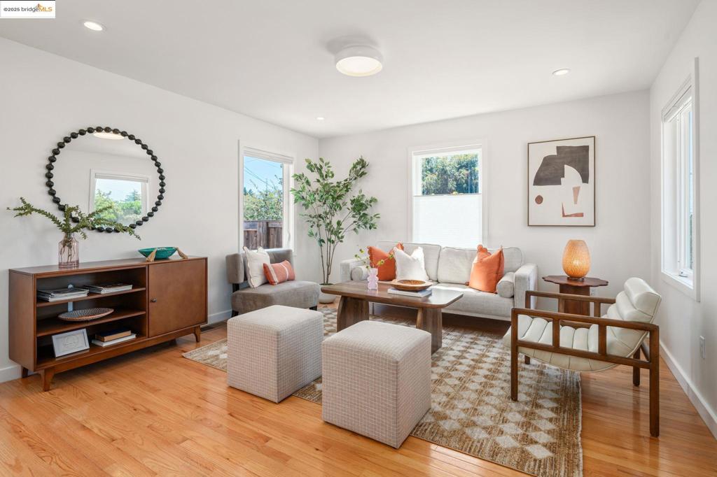 On a sunny corner lot, this El Cerrito home feels brand new—because it nearly is. Rebuilt down to the studs in 2018, it has newer foundation, framing, insulation, windows, roof, and almost every system replaced. Copper plumbing, updated electrical, owned solar, and a high-efficiency heat pump for both HVAC and hot water are rare finds in a market of older homes. From the street, you can’t miss the timeless shingled facade and cheerful trim. Inside, the home is just as joyful: modern, open, and designed for connection. The main level offers a spacious living/dining area and a kitchen made for both cooking and conversation. Upstairs are three bedrooms, two full baths, and a bright flex nook. Outside, enjoy a wraparound yard with mature fruit trees and plenty of play space, plus a detached studio makes an ideal office, gym, or creative workshop. Zoned for Madera Elementary and close to the Natural Hillside Area, Ohlone Greenway, public transit, and HWY 80, this location balances convenience with access to nature and community.